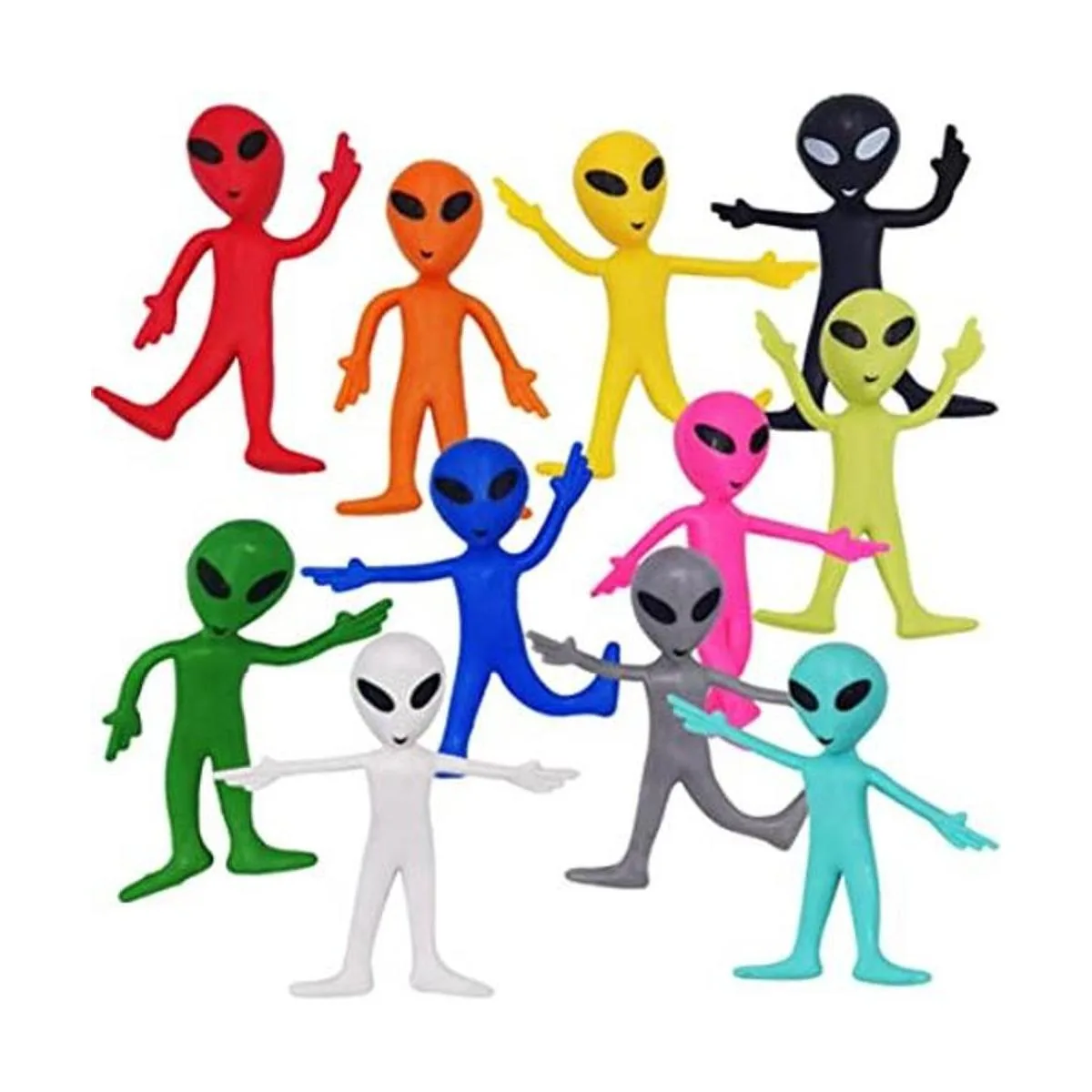 Surtido vibrante: añade un poco de brillo a esa batalla. Cada juego viene con 12 juguetes extraterrestres flexibles en un llamativo surtido de colores brillantes. Los personajes felices destacan con un toque de verde, negro, gris, azul claro, amarillo, verde claro, blanco, rojo, azul, morado, naranja y rosa.