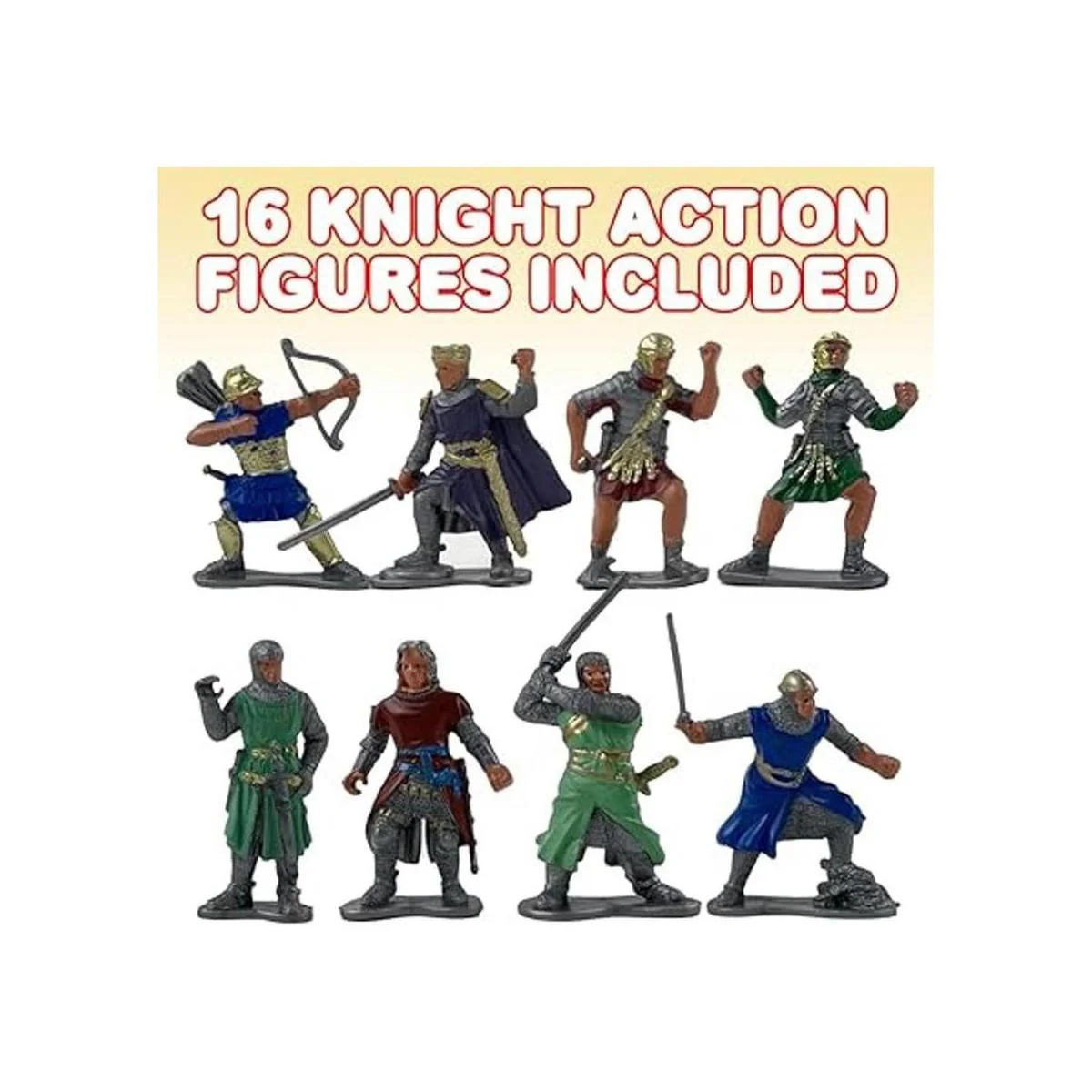 Diseñado para durar: hemos dado vida a nuestras figuras de caballero utilizando plástico de alta calidad para soportar toda la diversión. Los juguetes de caballero miden 2.5 pulgadas de alto, el tamaño perfecto para las manos pequeñas de tu hijo. Lo más genial de nuestros juguetes es que pueden mantenerse de pie por sí solos.