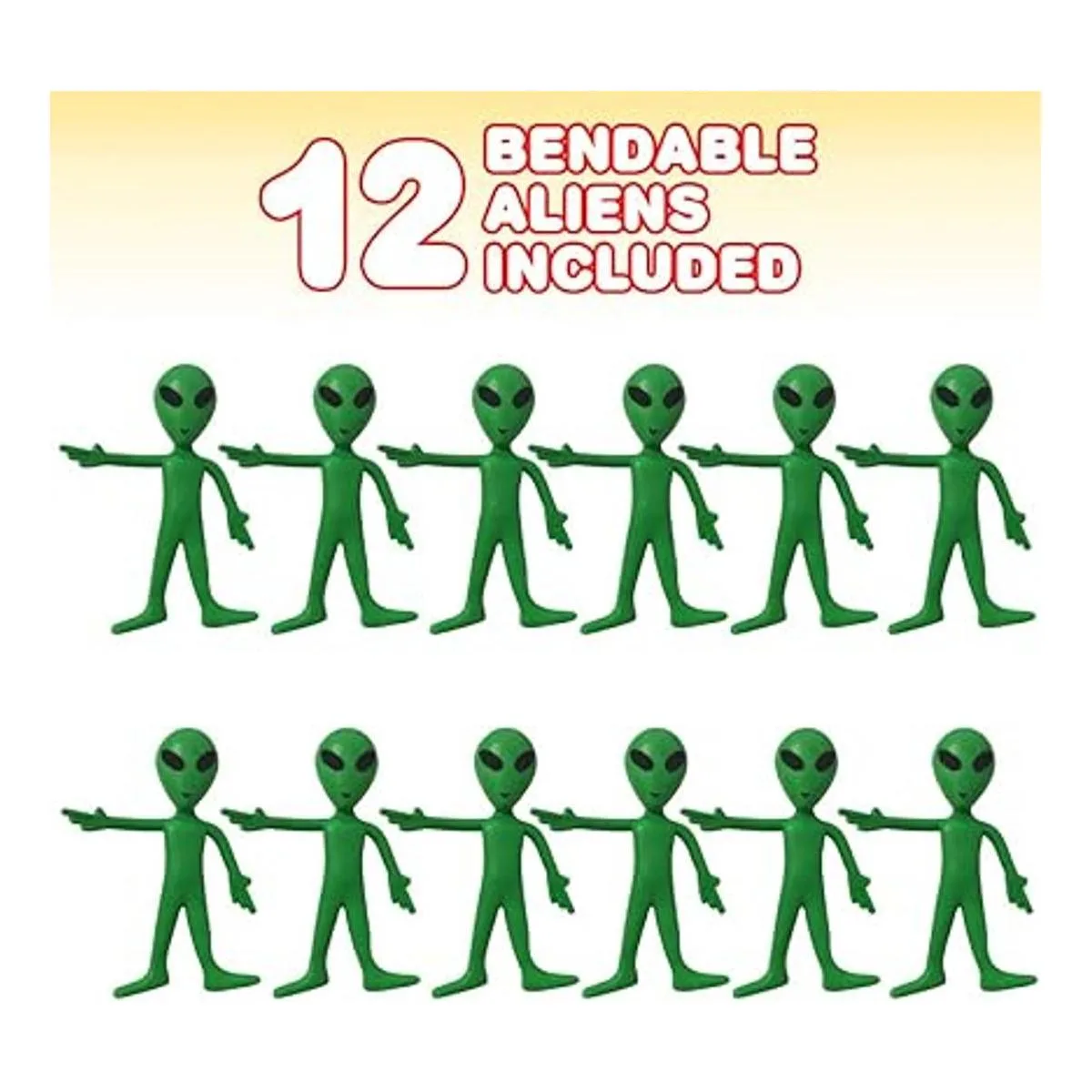 Figuras alienígenas: asusta tu espacio con estas figuras alienígenas flexibles. Este juego incluye 12 alienígenas flexibles diseñados con un toque realista de color verde. Dale a tu hijo un conjunto de alienígenas que están fuera de este mundo.