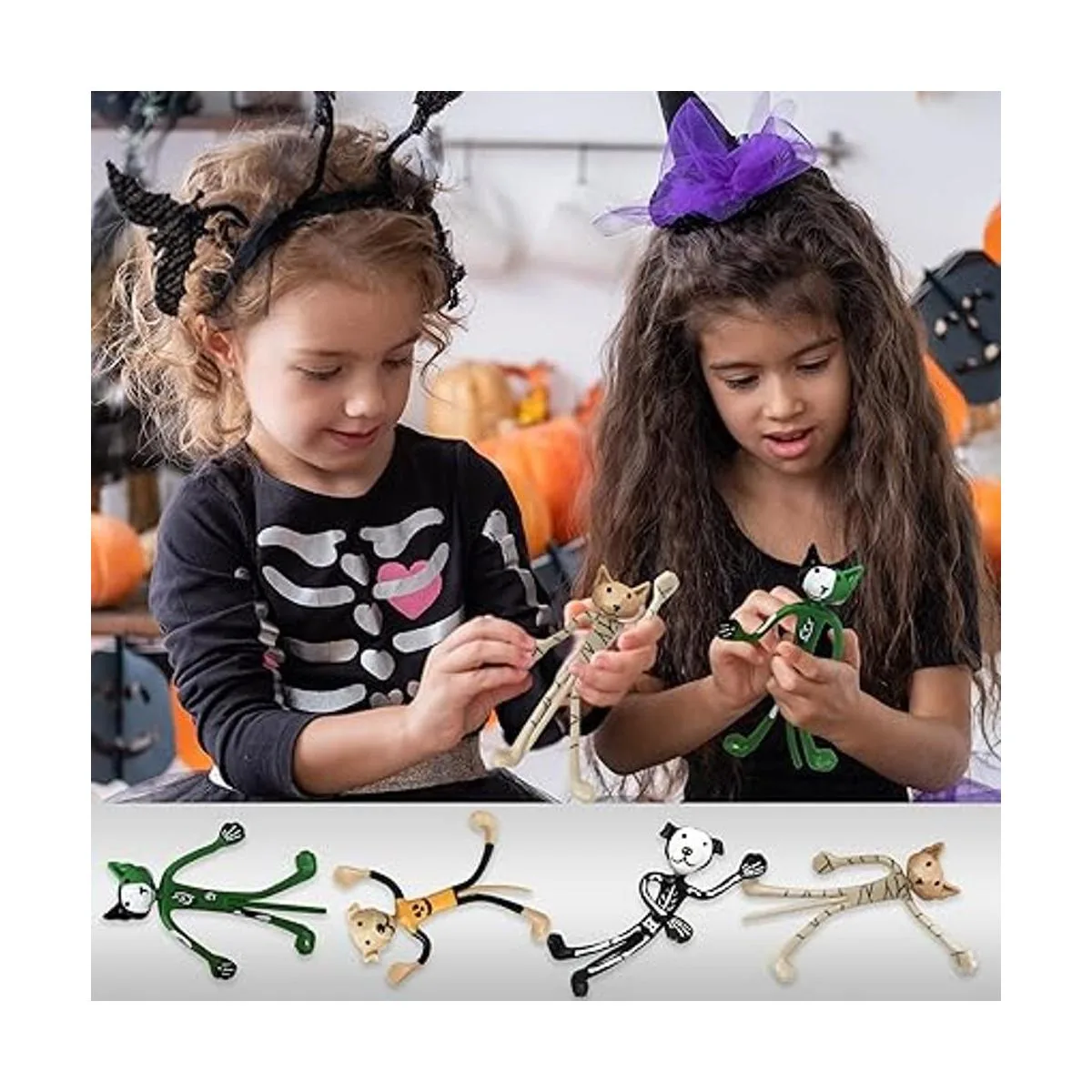 Golosinas espeluznantes: mascotas flexibles con un gran amor por Halloween Este paquete viene con un juego de 12 figuras flexibles en 4 diseños llamativos. A los niños les encantará el diseño 3D y la variedad de perros y gatos balanceando disfraces clásicos de Halloween.