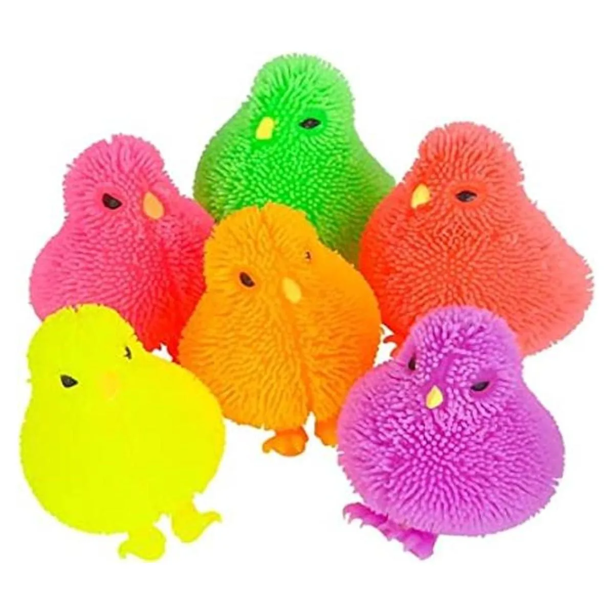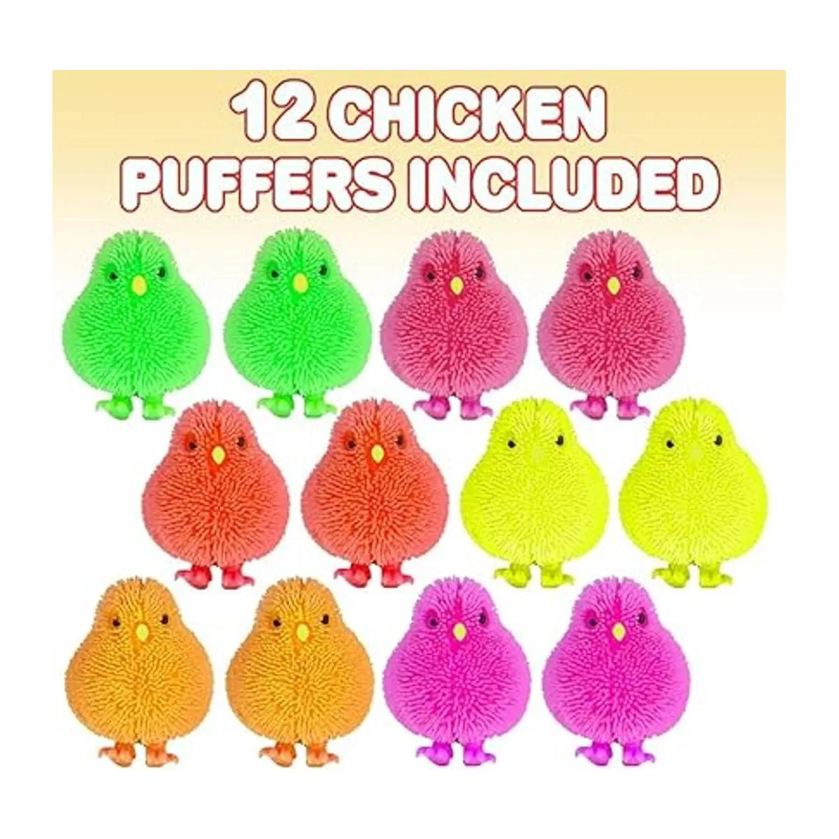 ArtCreativity Globos de pollo de 3 pulgadas, paquete de 12, juguetes sorpresa de pollo para llenar huevos de Pascua, recuerdos de fiesta de Pascua, suministros de búsqueda de huevos, juguetes para aliviar el estrés para niños, colores neón surtidos
