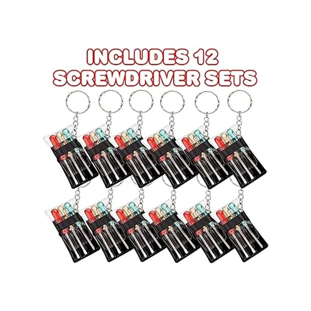 ArtCreativity Juego de 12 mini destornilladores con llavero, cada juego incluye 3 destornilladores en una bolsa portátil, recuerdo de fiesta, relleno de bolsas de golosinas