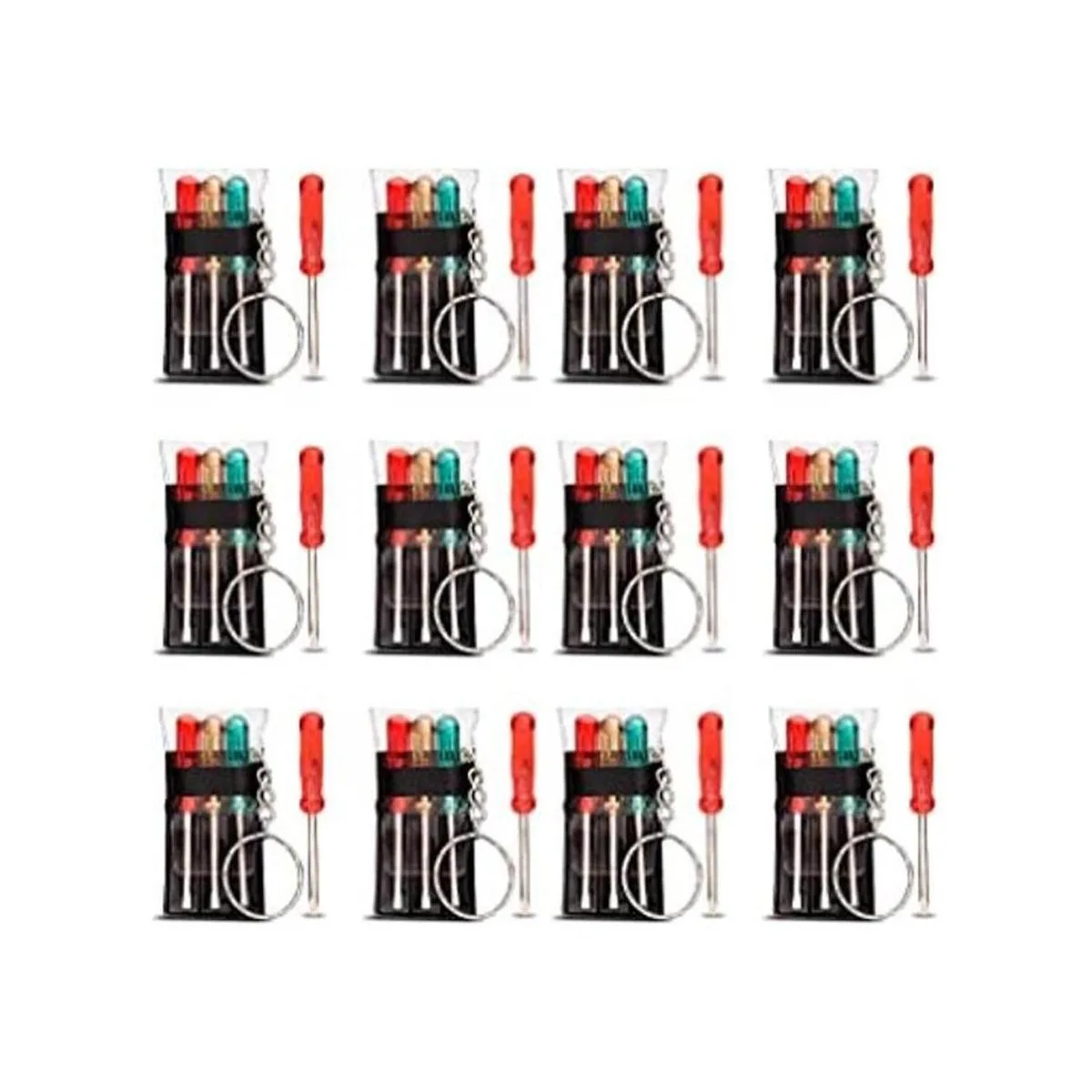 Mini mano: todo un juego de destornilladores está a solo un llavero de distancia Este juego incluye 12 bolsas de PVC para llavero con 3 mini destornilladores 2.5 pulgadas en cada uno. Con 2 cabezas planas y 1 destornillador Phillips en cada bolsa, tendrás lo que necesitas para hacer frente a la mayoría de los tornillos que encuentres.