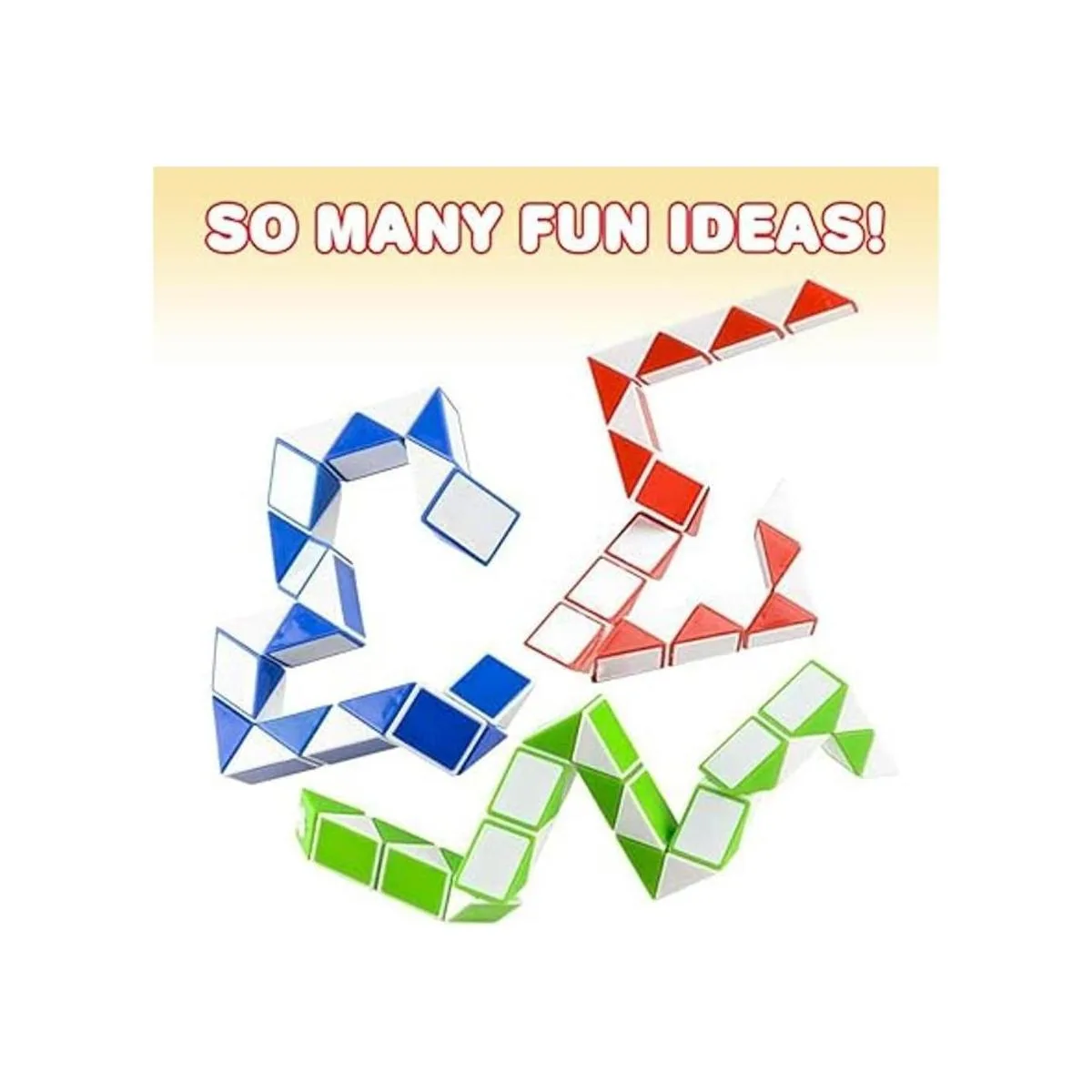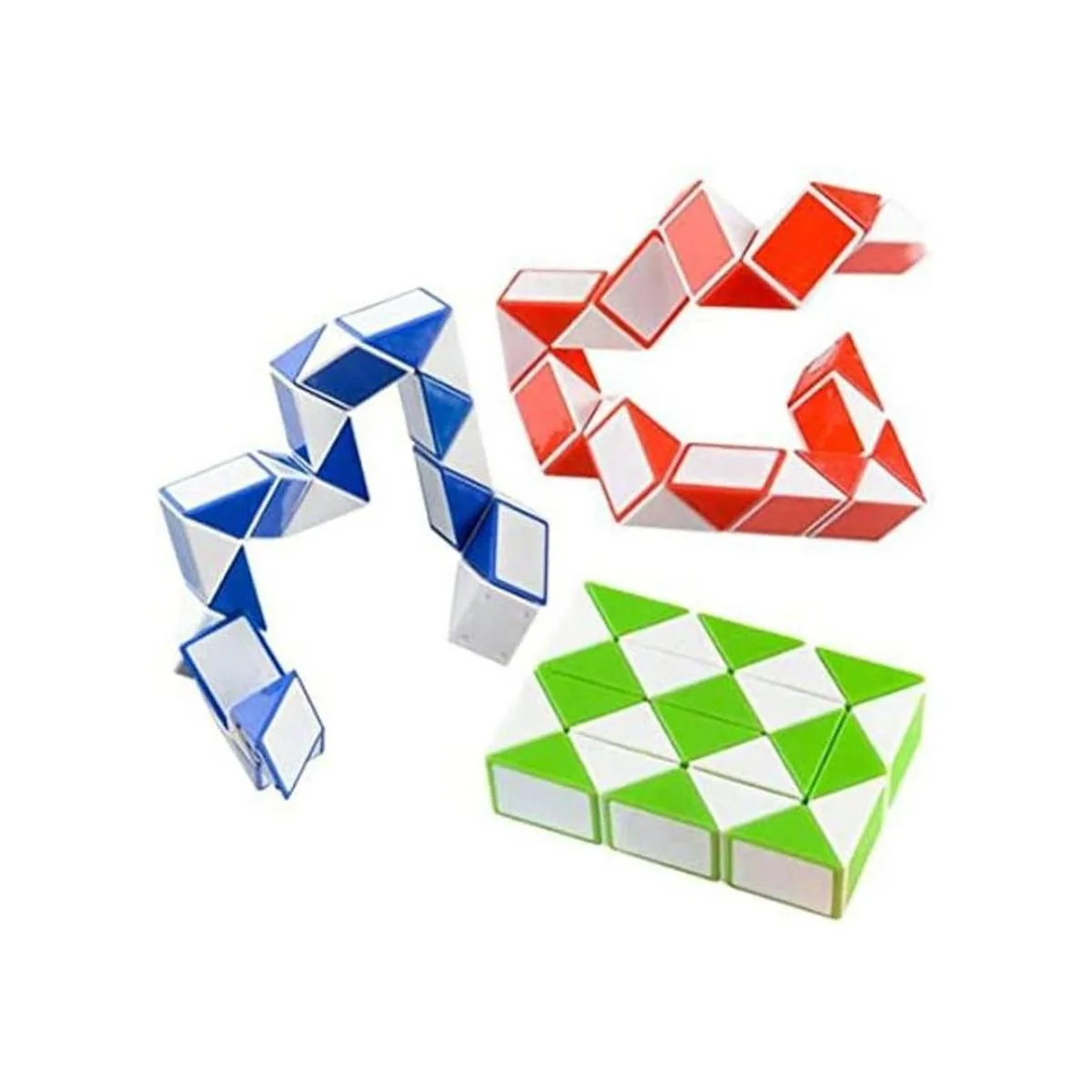 Estimula sus mentes: pequeñas teasers cerebrales que hacen que sea muy divertido. Este juego de 3 incluye 1 serpiente de rompecabezas de color azul, 1 rojo y 1 verde. Gira los pequeños cubos para convertir el juguete en una línea recta, serpiente, perro, escalera y una multitud de otras formas divertidas inspiradas en tu imaginación.