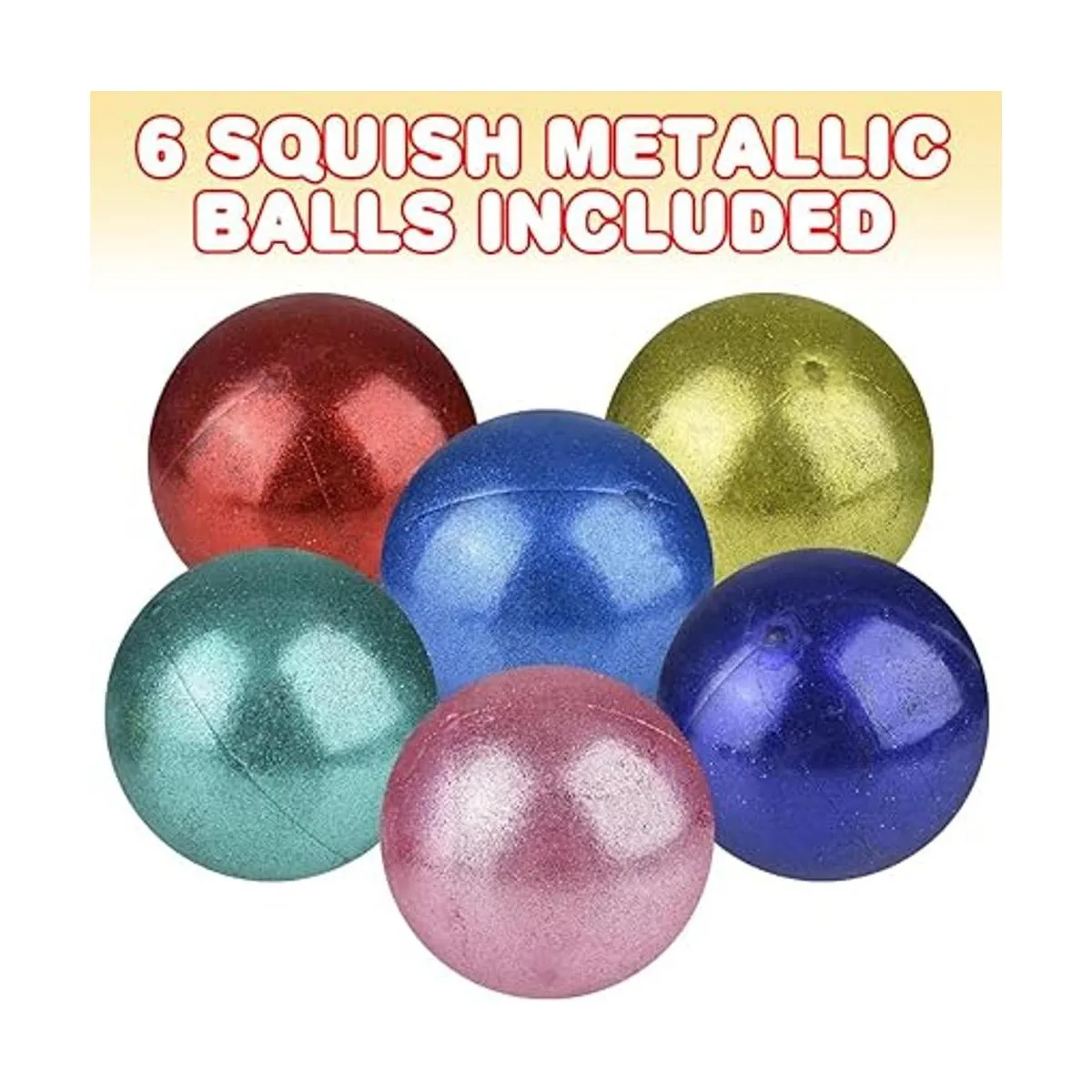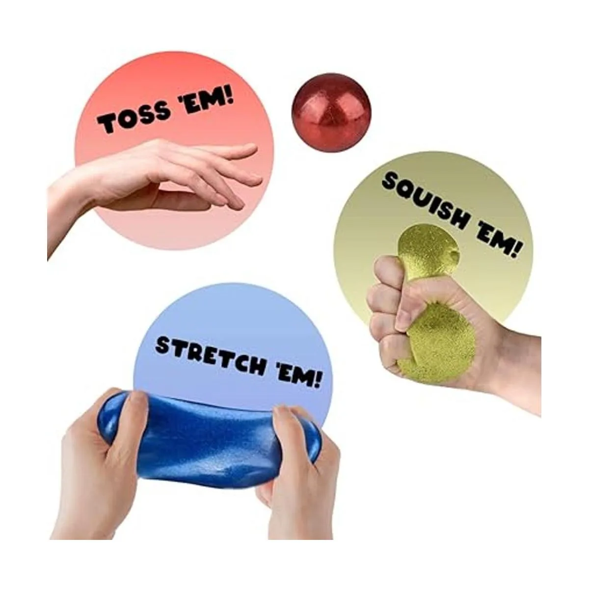 ArtCreativity Juego de 6 bolas adhesivas para el estrés, juguetes para aliviar el estrés para niños con un diseño metálico, juguetes para aliviar la ansiedad en varios colores, recuerdos de fiesta antiestrés y rellenos de piñata