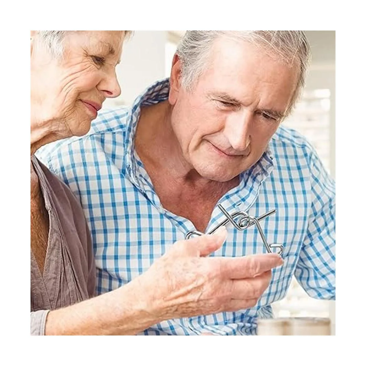 Divertido entrenamiento mental: consigue que los jugos lógicos fluyan con este divertido juego de rompecabezas de alambre de metal. Viene con 12 rompecabezas diferentes que afilan el pensamiento lógico, desarrollan el razonamiento espacial y mantienen a casi cualquier persona comprometida mentalmente. Niños y adultos e incluso ancianos tendrán una explosión tratando de separar las piezas.