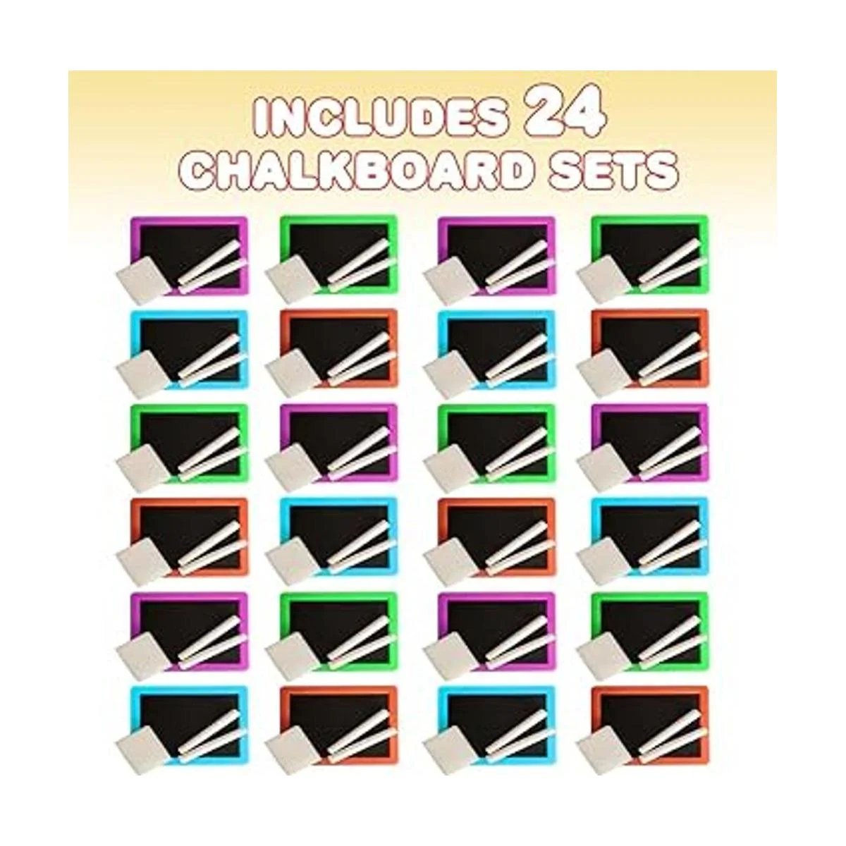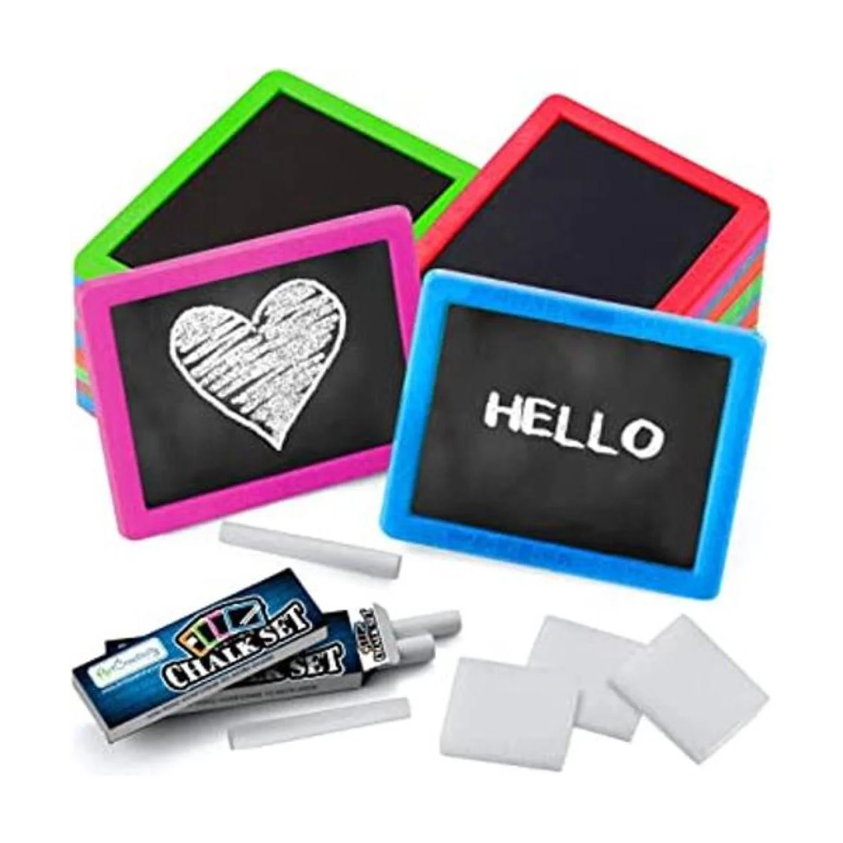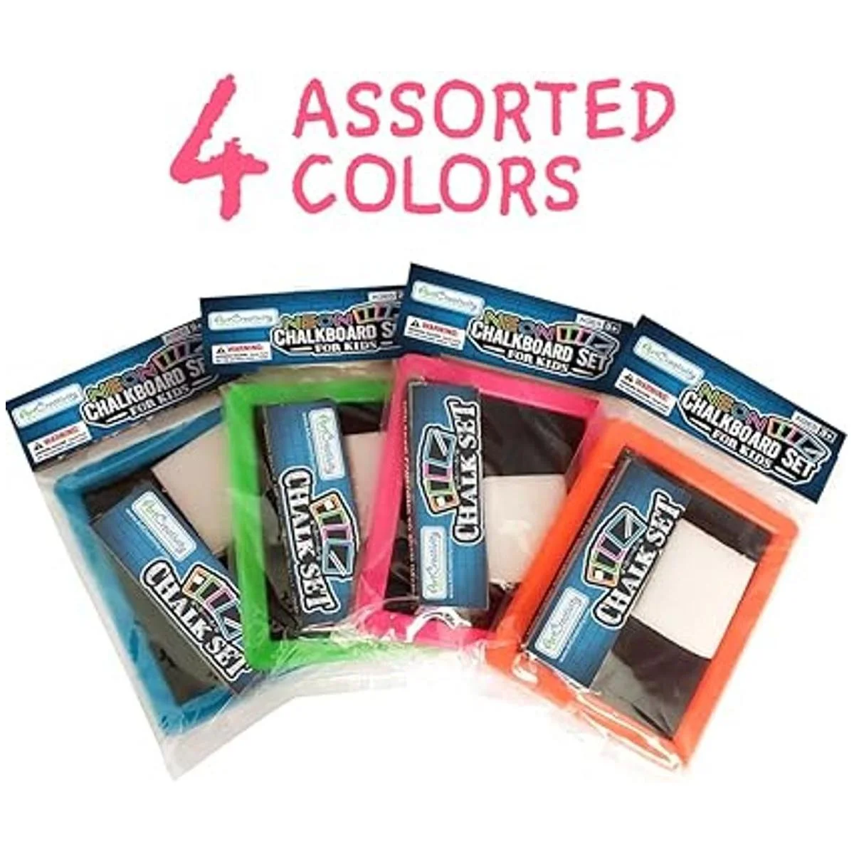 ArtCreativity Juegos de pizarra de neón para niños, 24 kits, 1 mini pizarra de tiza, 2 palitos de tiza y 1 borrador por kit, recuerdos de fiesta de cumpleaños artístico para niños y niñas, rellenos únicos de bolsas de papelería