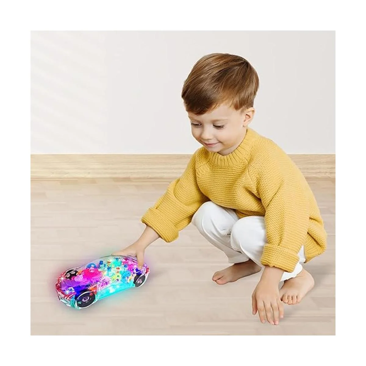 Alimenta la emoción: un juguete de coche que lleva la diversión a extremos rápidos y furiosos. Este auto de juguete transparente para niños está lleno de características. Se ilumina, reproduce música, se mueve por sí solo, e incluso tiene engranajes coloridos que giran en un estilo espectacular para horas de diversión.