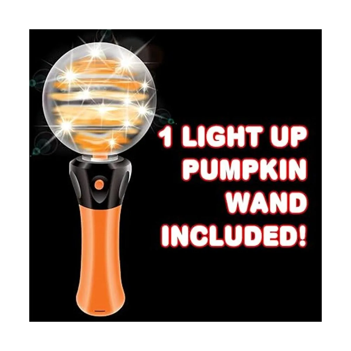 Ilumina la noche: perfora la oscuridad con una porción de fascinante espeluznante Esta varita mágica de calabaza de Halloween de 7.5 pulgadas es una receta para sonrisas instantáneas. Al pulsar el botón hace que la varita se ilumine en un caleidoscopio de color que encenderá la imaginación.