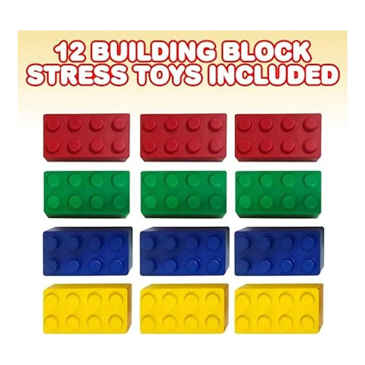 ArtCreativity Juguetes para aliviar el estrés de bloques de construcción para niños, juego de 12, juguetes apilables de espuma de construcción en 4 colores vibrantes, recuerdos de fiesta de cumpleaños, rellenos de bolsas de golosinas, regalos de oficina, juguetes sensoriales
