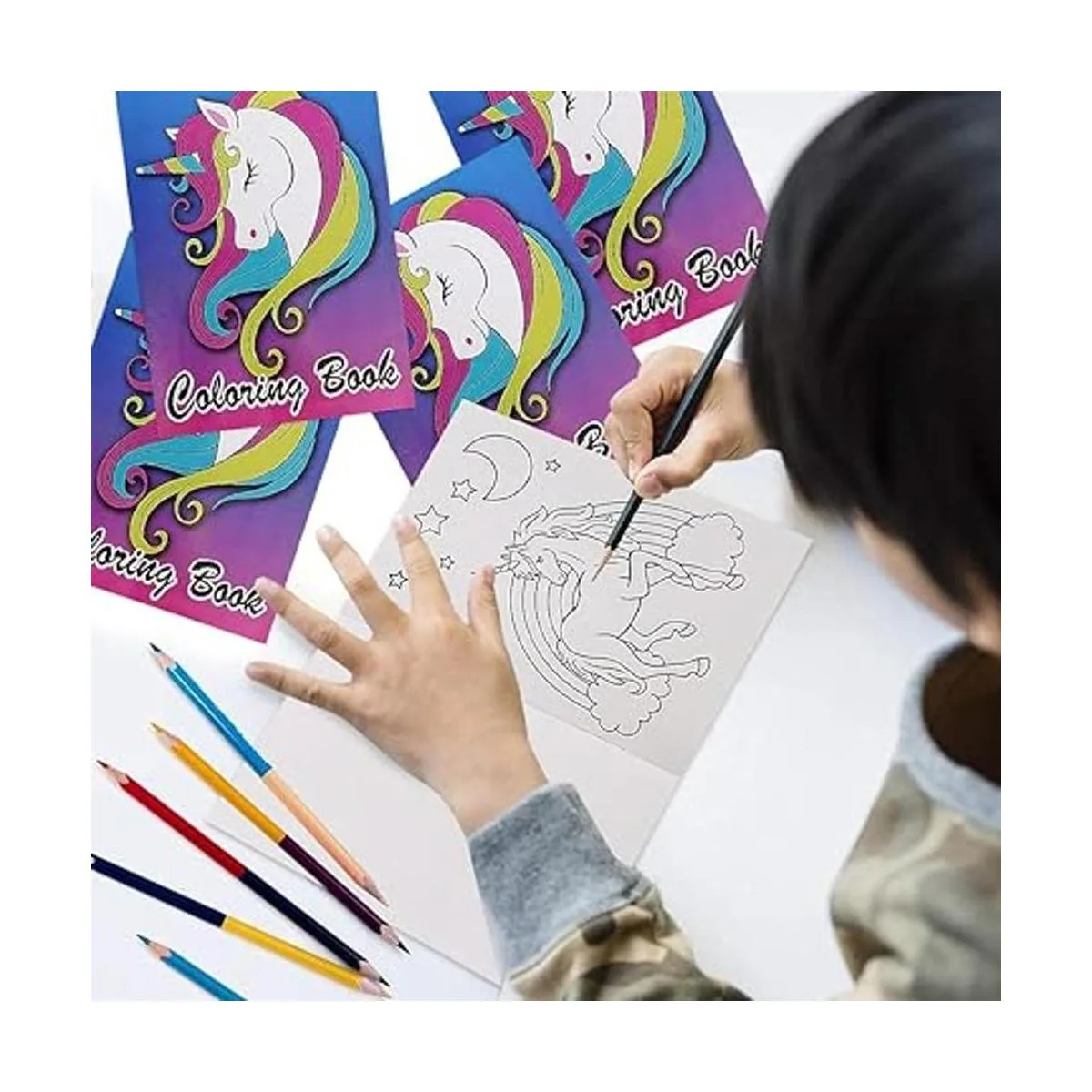 Hazlos sonreír: libros para colorear que hacen que sea muy divertido Este juego incluye 12 libros para colorear, cada uno con 6 páginas llenas de imágenes esperando ser traídos a la vida. Cada paquete contiene libros para colorear en varios diseños de unicornio para mantener a los niños sonriendo.
