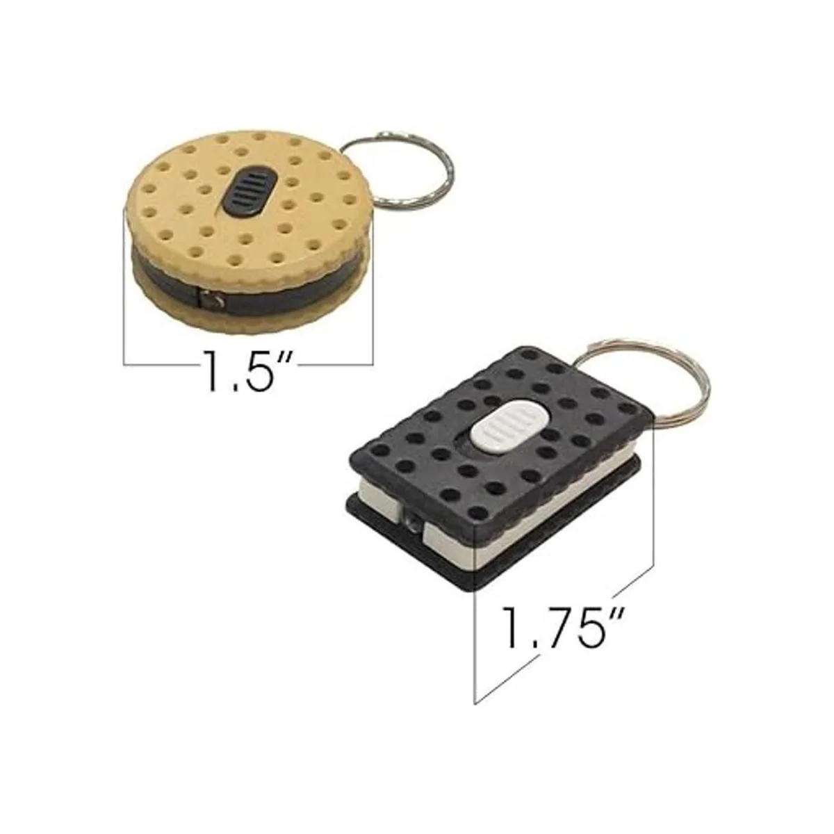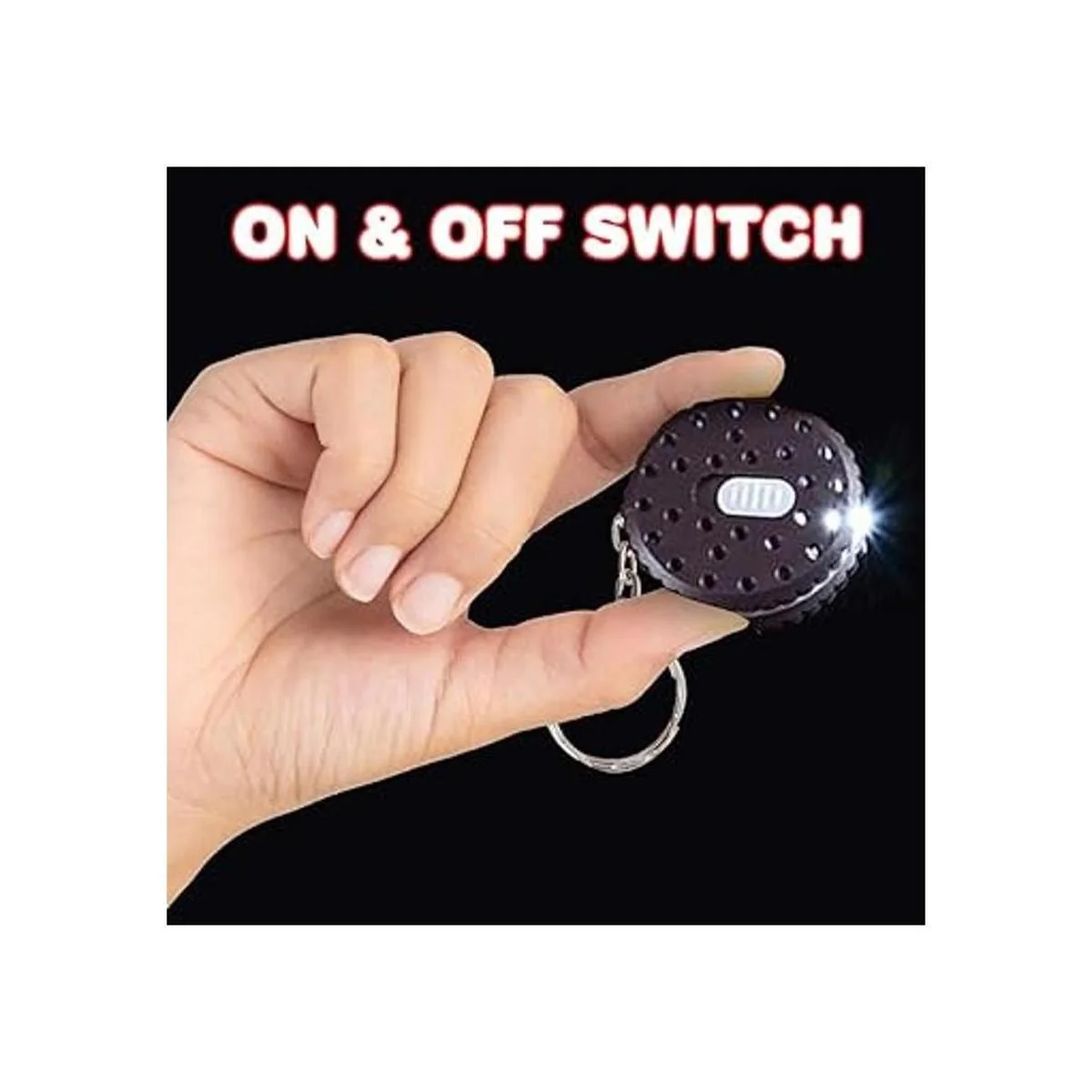 Ilumina el camino: ilumina la oscuridad simplemente sacando tus llaves Estos llaveros de linterna vienen en forma de mini réplicas de galletas sándwich que se encienden con un simple deslizamiento de un interruptor. Las baterías vienen ya incluidas no reemplazables para empezar la diversión de inmediato.
