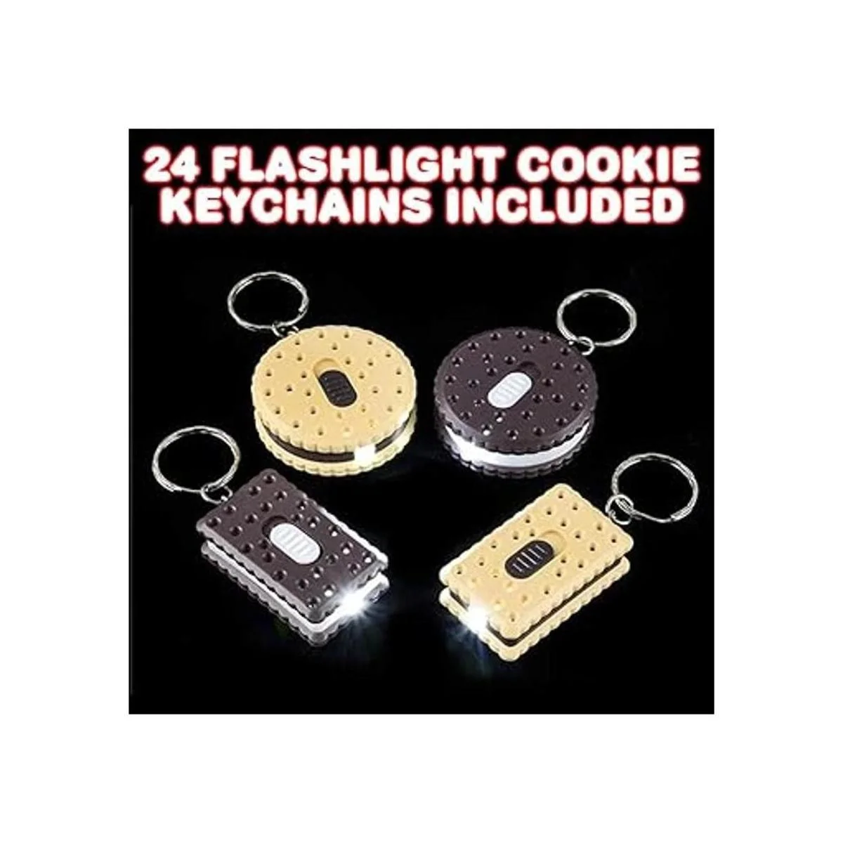 ArtCreativity Llaveros de linterna de galletas sándwich, paquete de 24, llaveros LED en varias réplicas de galletas, llaveros de plástico duradero, recuerdos de fiesta de cumpleaños, rellenos de bolsas de regalo para niños