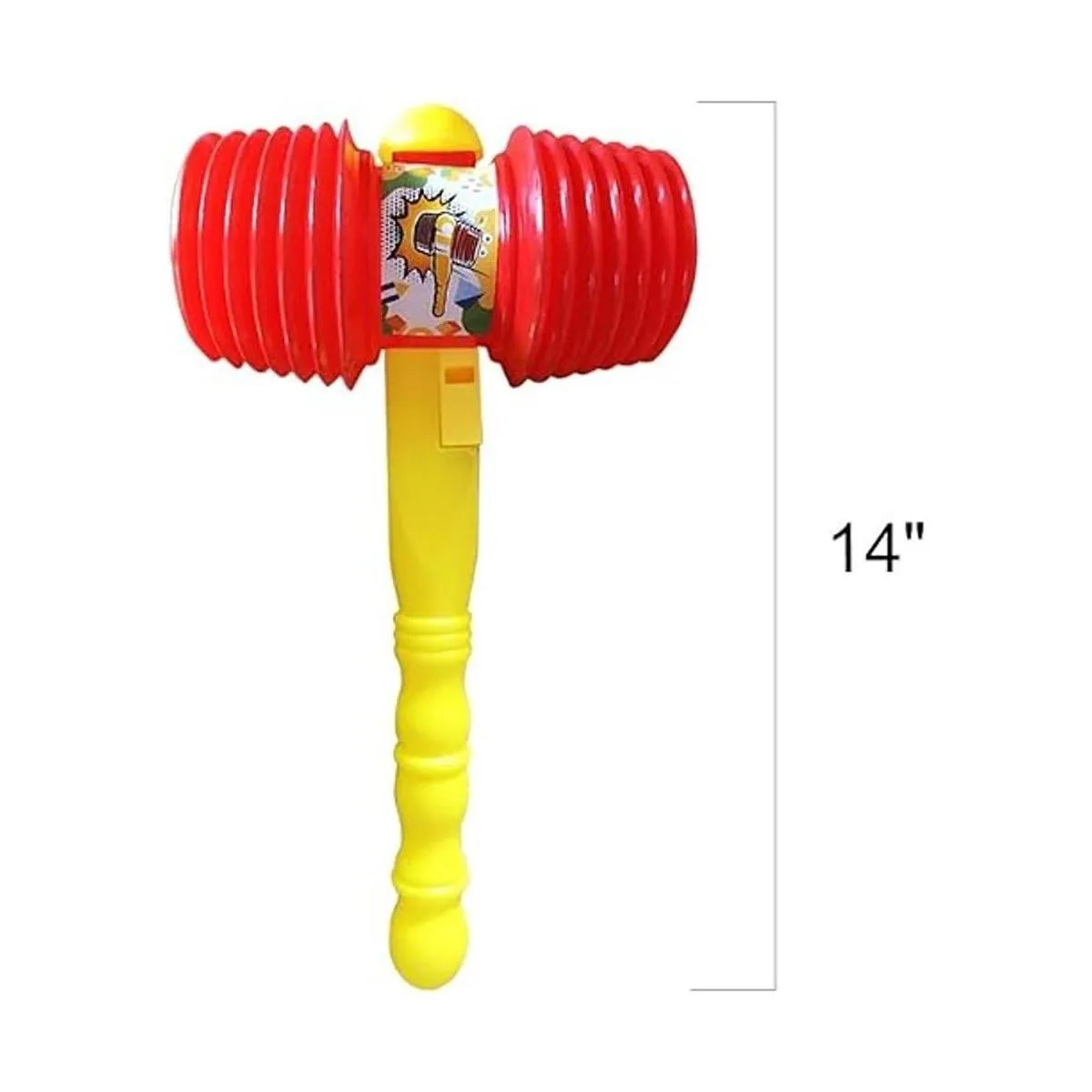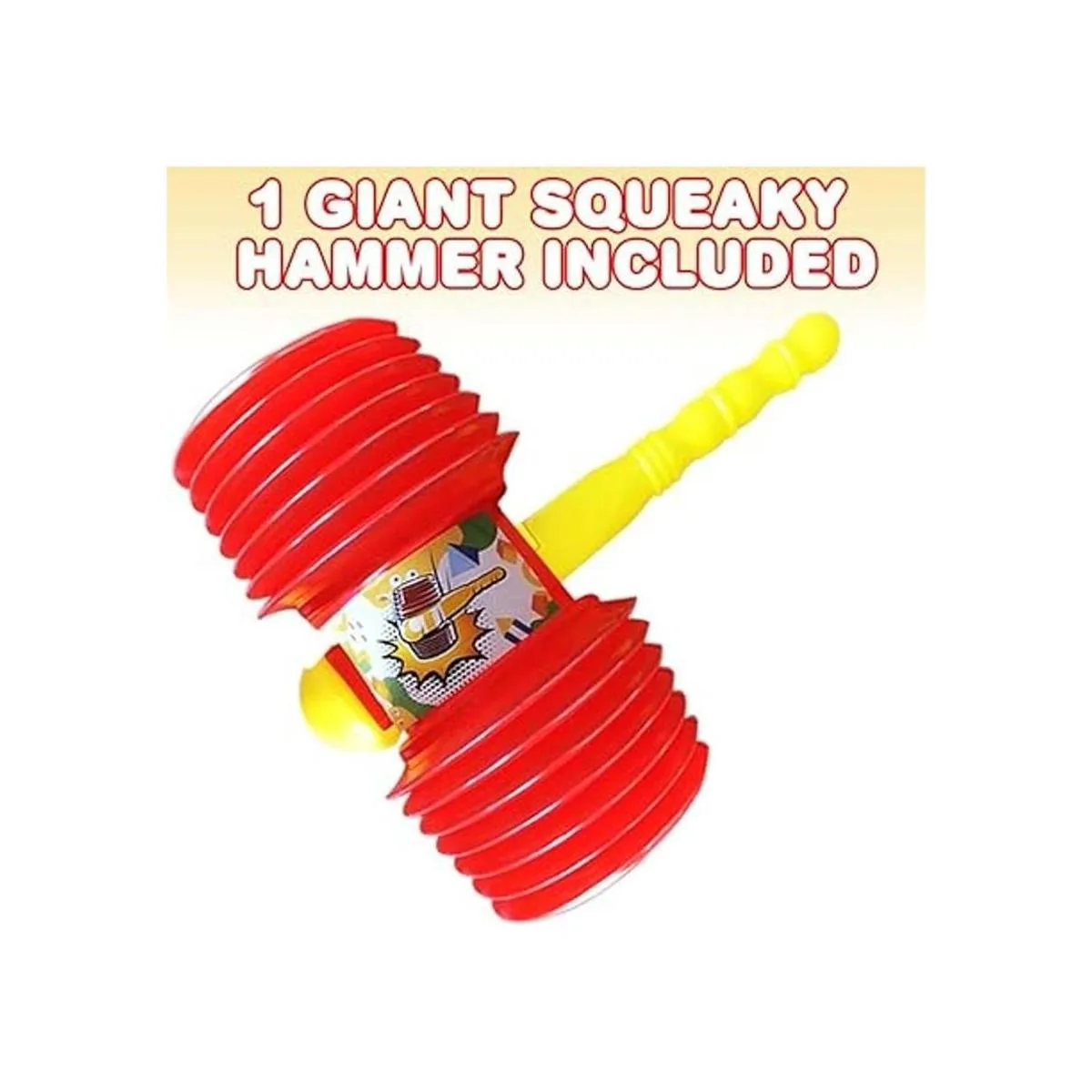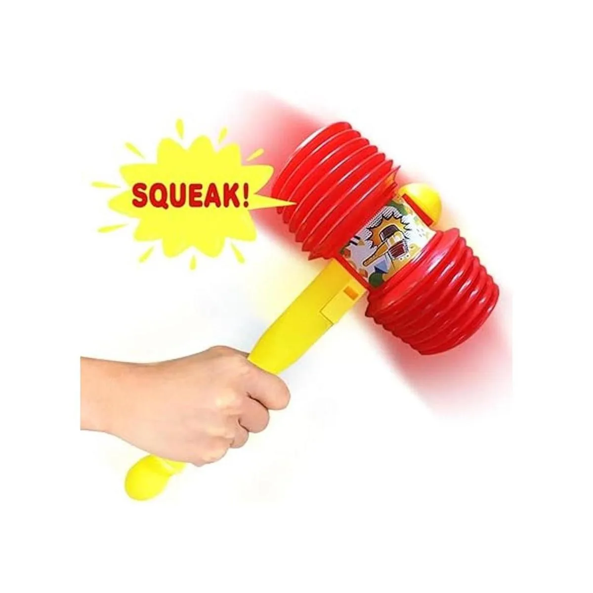 Bondad crujiente: mantén a los más pequeños encantados durante horas con chirridos que despiertan sonrisas y diversión cautivadora. Este juguete de martillo gigante para niños mide 14 pulgadas y viene con un chirriador en el interior. Utilízalo para golpear una superficie y escuchar que el chirrido llena el aire.