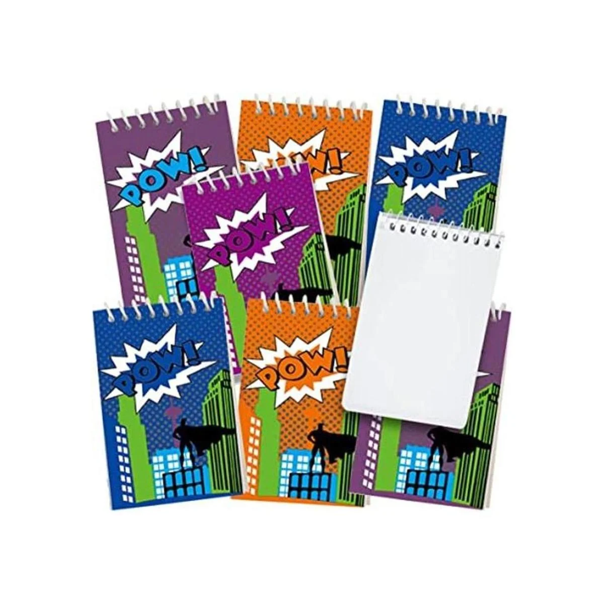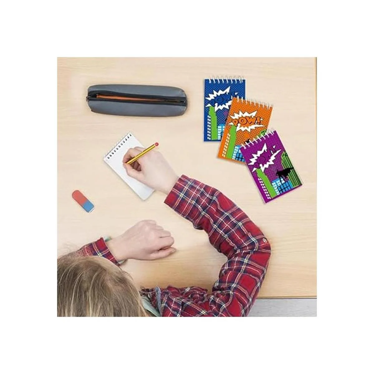 Divertido surtido de diseños: los colores vibrantes se unen con diseños llamativos para crear mini cuadernos en espiral inspirados en cómics que las niñas y los niños disfrutarán. Cada juego viene con una variedad de diseños que tanto a niños como a niñas les encantarán; perfecto para cualquier velada temática de superhéroes.
