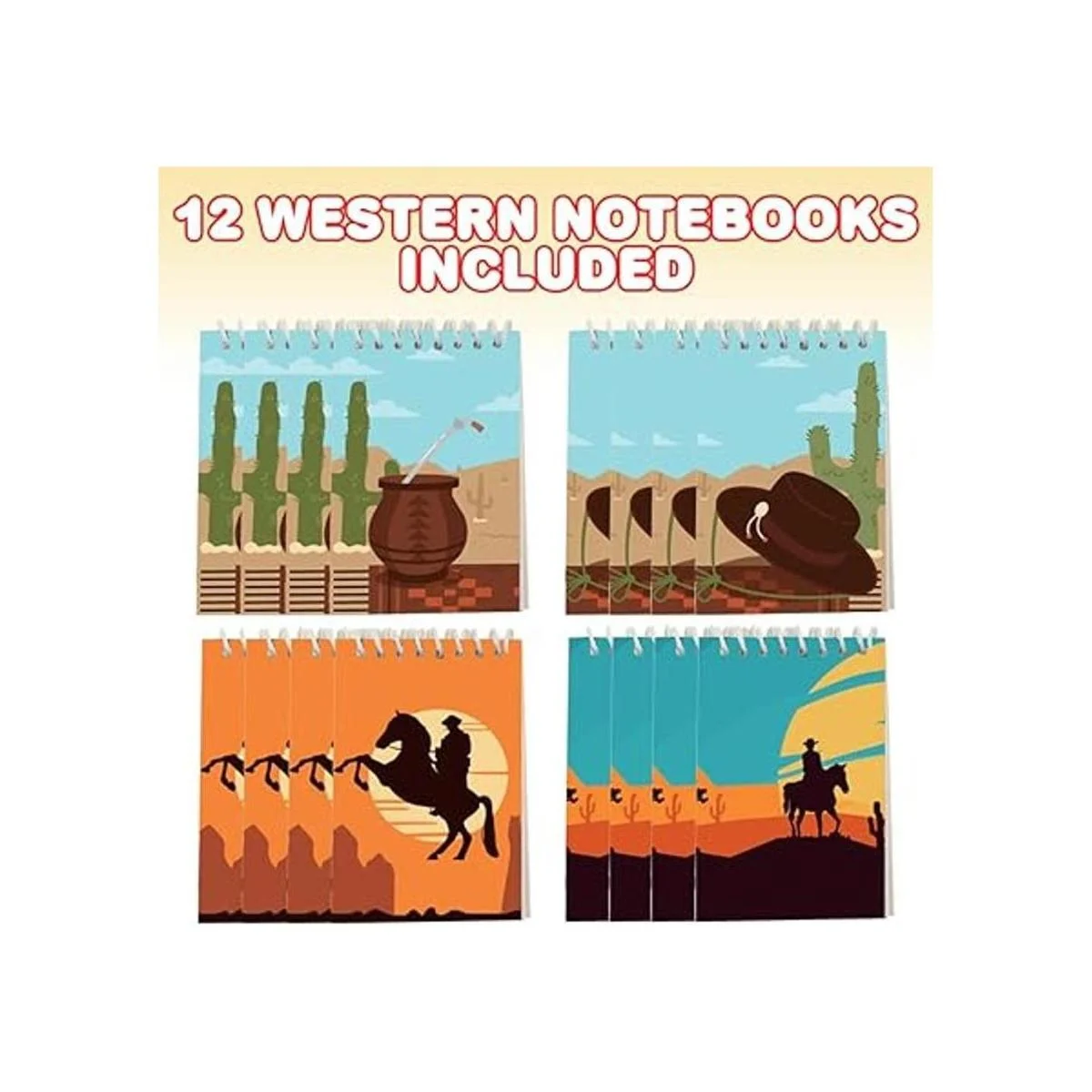 ArtCreativity Mini cuadernos occidentales, paquete de 12, pequeños cuadernos espirales con cubiertas temáticas de vaquero, lindos suministros de papelería para la escuela y la oficina, divertidos recuerdos de fiesta de cumpleaños, rellenos de bolsas para niños