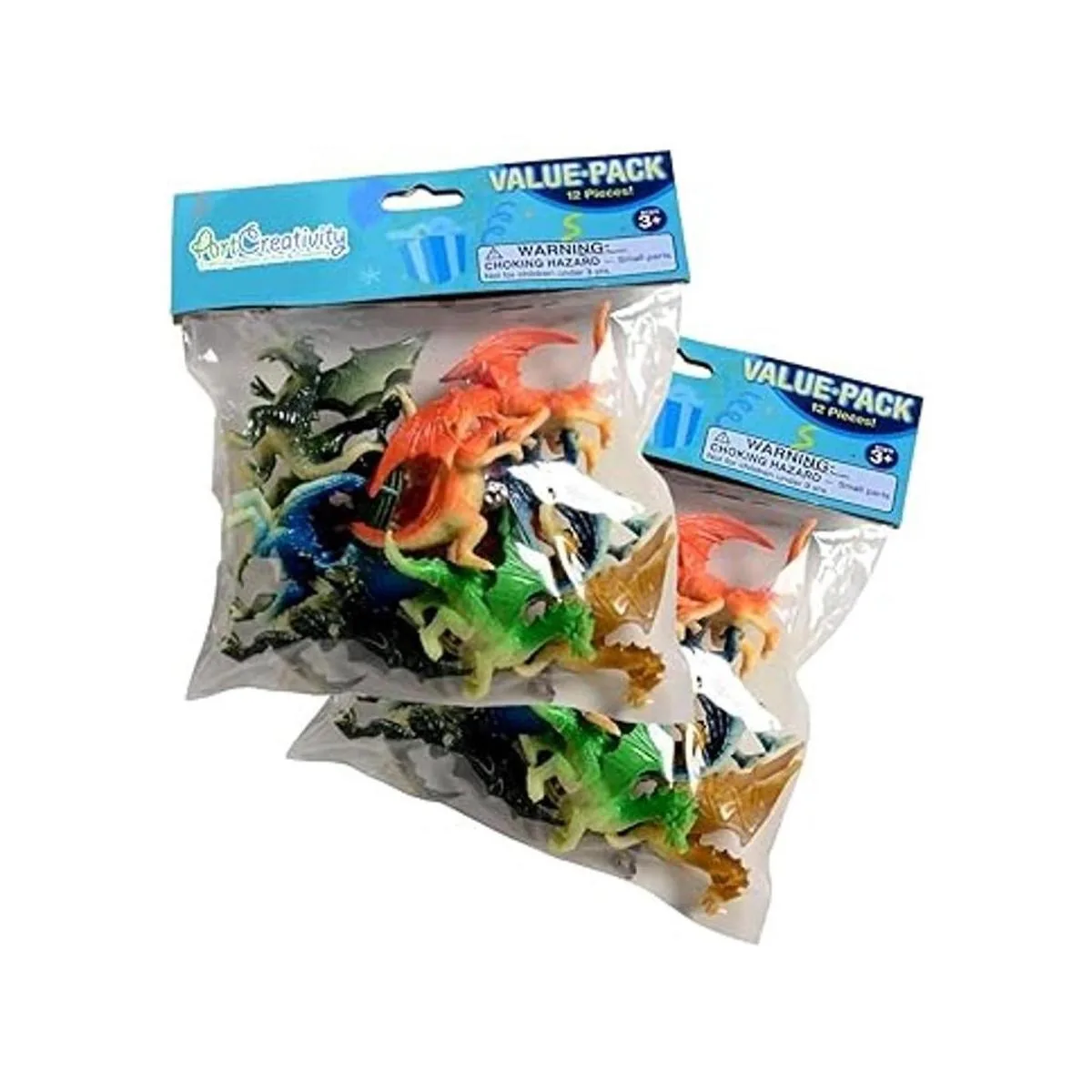 ArtCreativity Mini dragones, paquete de 24, diseños surtidos coloridos, recuerdos de fiesta de figuras de dragón, rellenos de piñata, adornos para pasteles y magdalenas, rellenos de calcetines, juguetes para niños y niñas a partir de 3 años