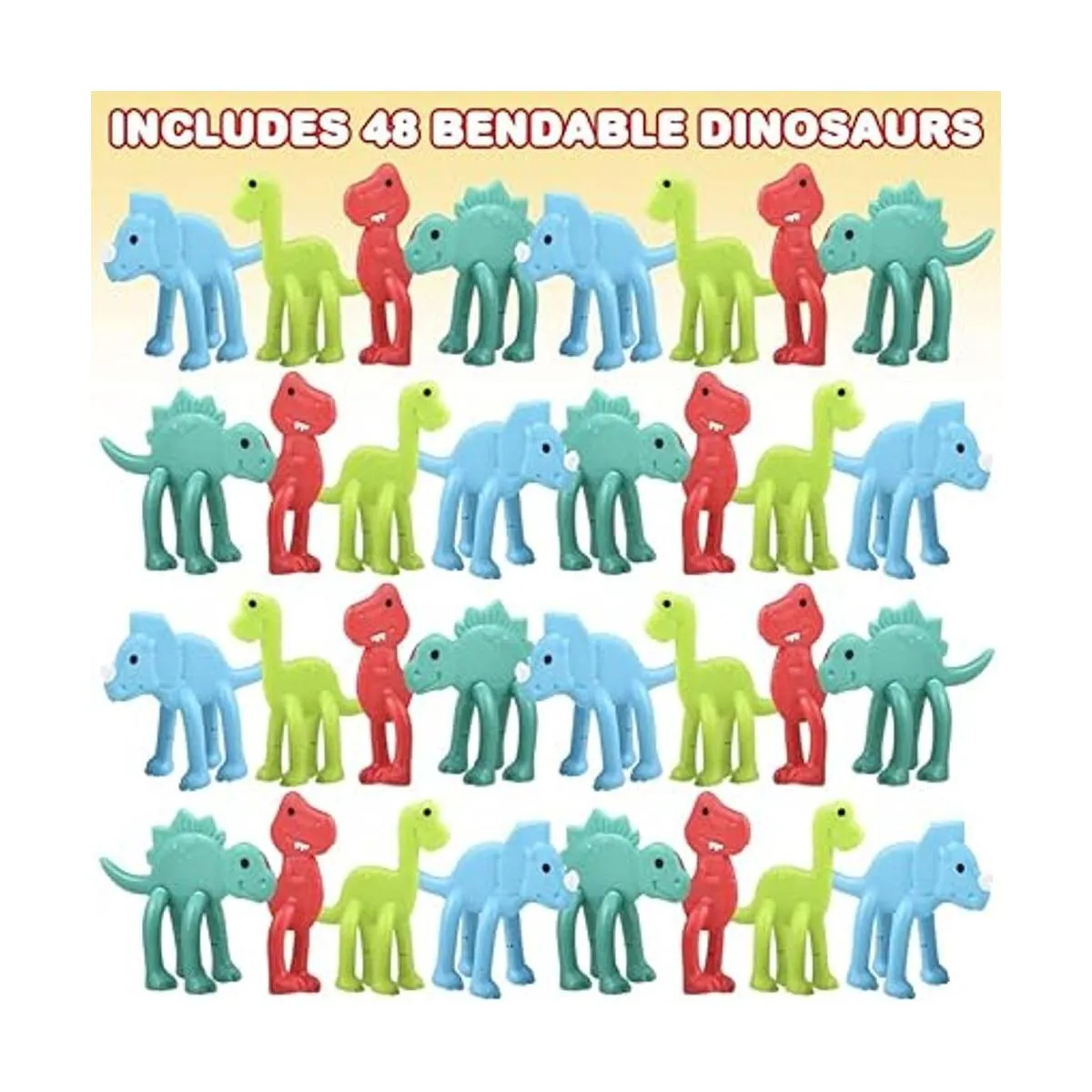 ArtCreativity Mini juguetes de dinosaurio flexibles para niños, juego de 48, juguetes para aliviar la ansiedad en 4 colores, ideales como recuerdos de fiesta de cumpleaños de dinosaurio, regalos de dinosaurio para niños, rellenos de piñata y premios de aula