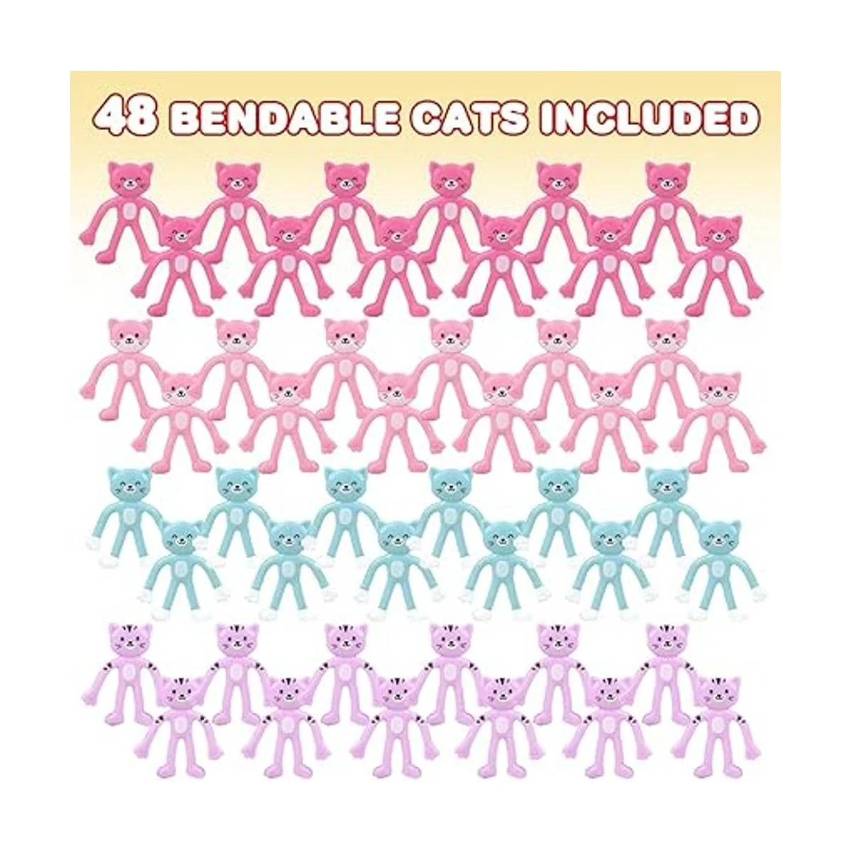 ArtCreativity Mini surtido de gatos flexibles, juego de 48 figuras flexibles en varios colores, recuerdos de fiesta de cumpleaños para niños y niñas, juguetes para aliviar el estrés, rellenos de bolsas de regalos para niños
