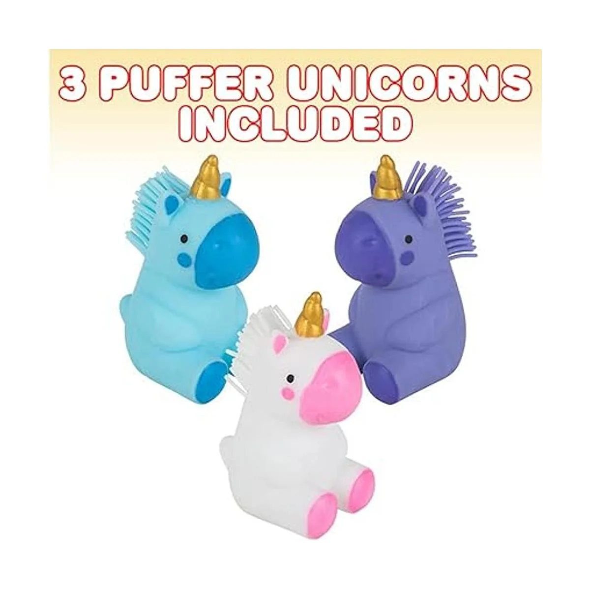 ArtCreativity Puffer Juguetes de unicornio para niños, juego de 3, juguetes antiestrés para niñas y niños, suministros de fiesta de unicornio, lindos rellenos de bolsas de regalo y regalos de fiesta, juguetes para aliviar el estrés para niños, 3 colores