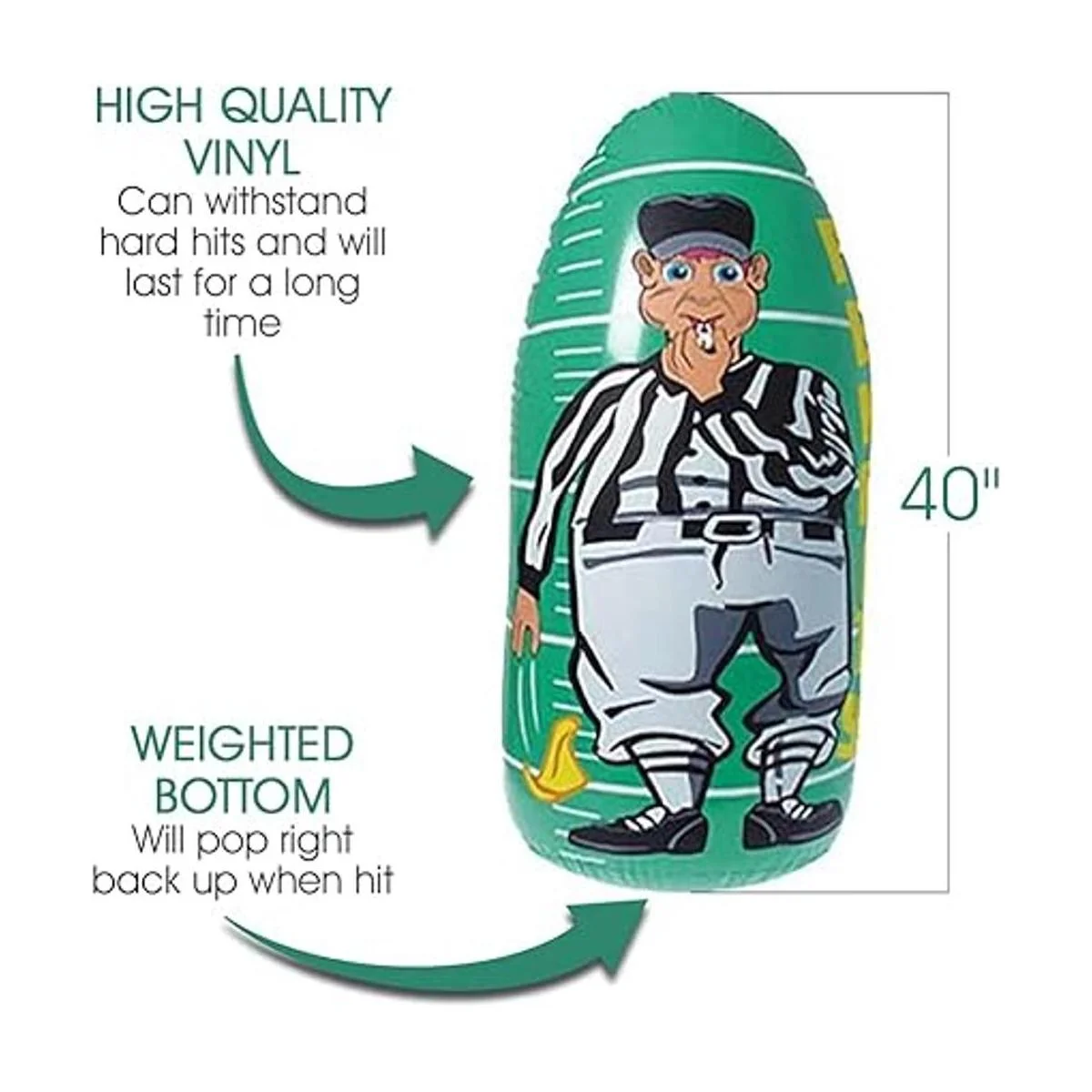 Parte trasera derecha: el chupete de 3.9 ft de alto se levantará cuando se golpee. A tus invitados les encantará averiguar sus frustraciones en esta decoración de fiesta de fútbol en las malas llamadas que tu equipo está recibiendo. Debe inflarse completamente para rebotar después de ser perforado.