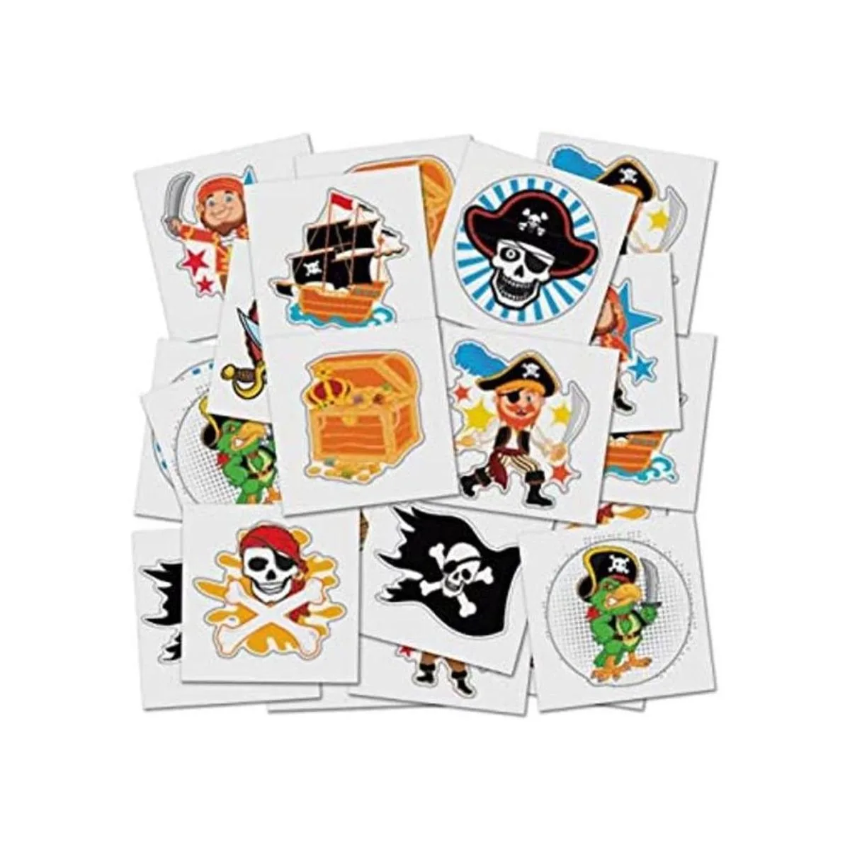 Hazlos sonreír: tatuajes piratas que les encantarán a los niños Estos tatuajes de 2 pulgadas vienen en un paquete a granel de 144 para darte una gran relación calidadprecio. Todos desde niños pequeños, niños pequeños hasta adolescentes recibirán una patada de estos. Aplícalos en tu cara, brazos o cuerpo para crear un colorido arte corporal.