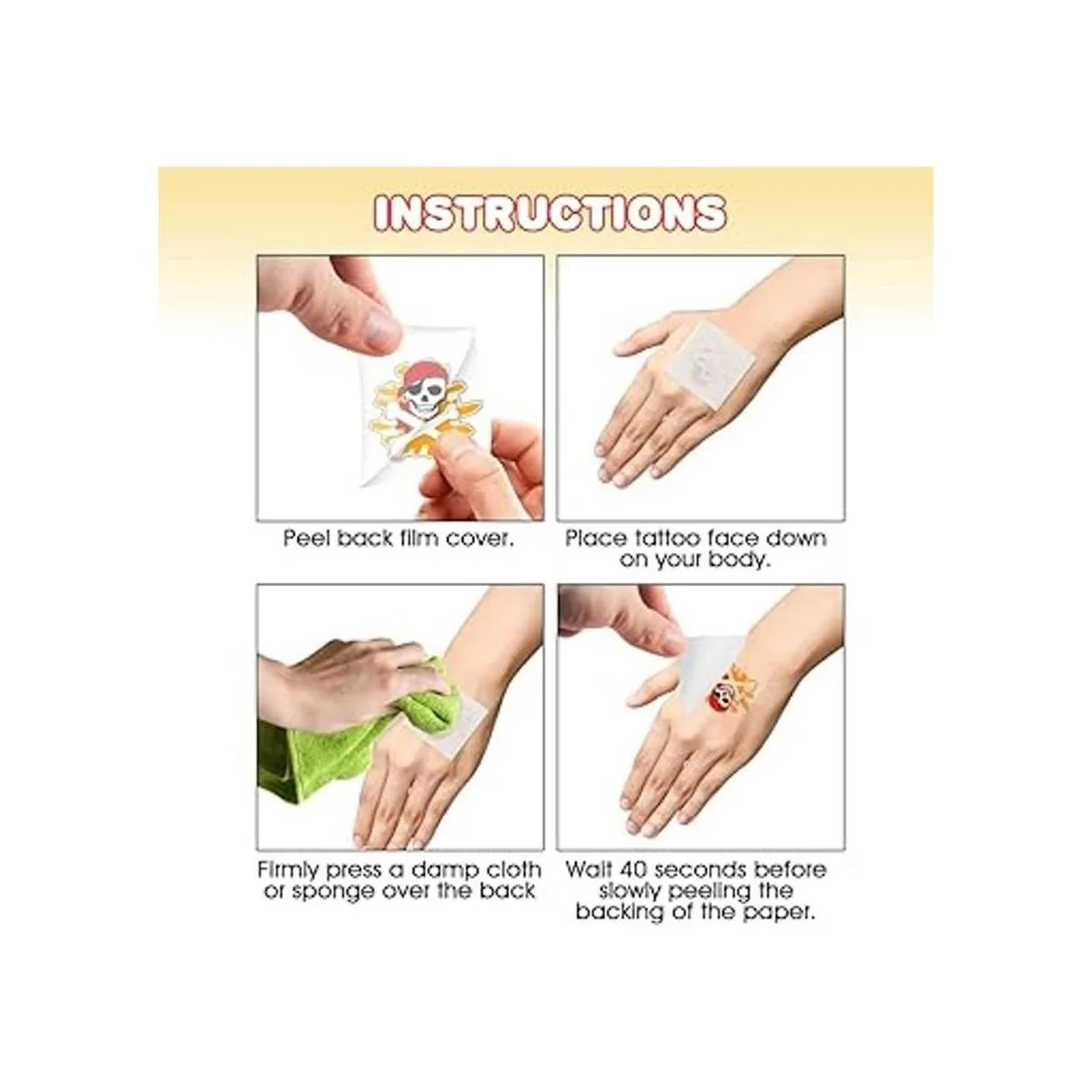 Colores divertidos: divertidos tatuajes temporales en varios diseños piratas. Hemos utilizado materiales de primera calidad para crear tatuajes para niños. El resultado Tats temporales que duran hasta 5 días. Frota en cualquier momento para quitar de forma segura.