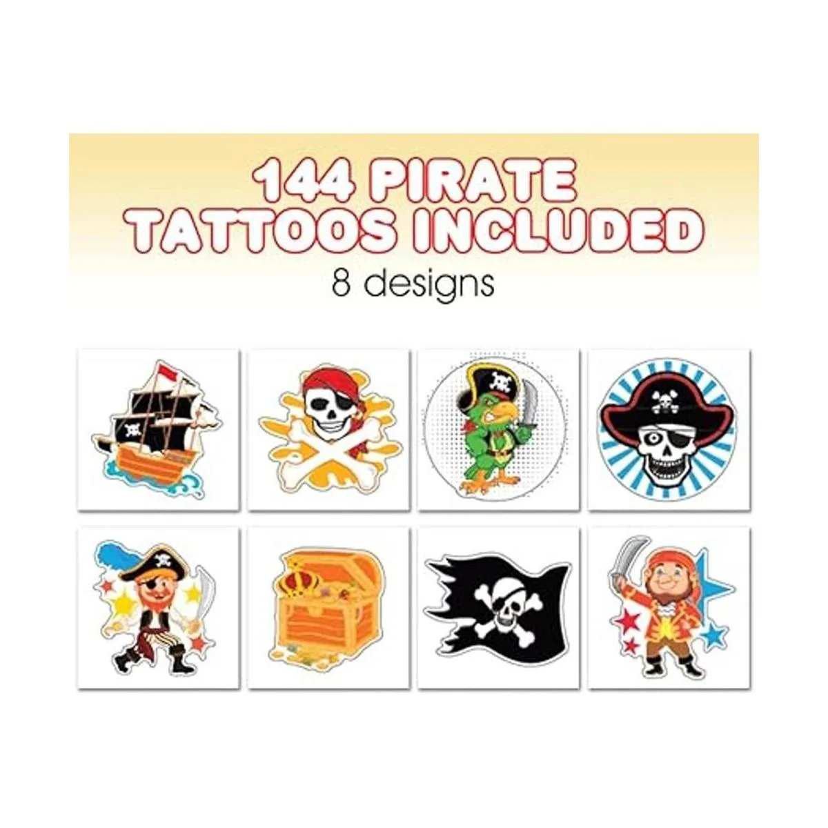 ArtCreativity Tatuajes temporales piratas para niños, paquete a granel de 144 en diseños surtidos, tatuajes no tóxicos de 2 pulgadas, recuerdos de fiesta de cumpleaños, rellenos de bolsas de regalos, golosinas de Halloween sin dulces