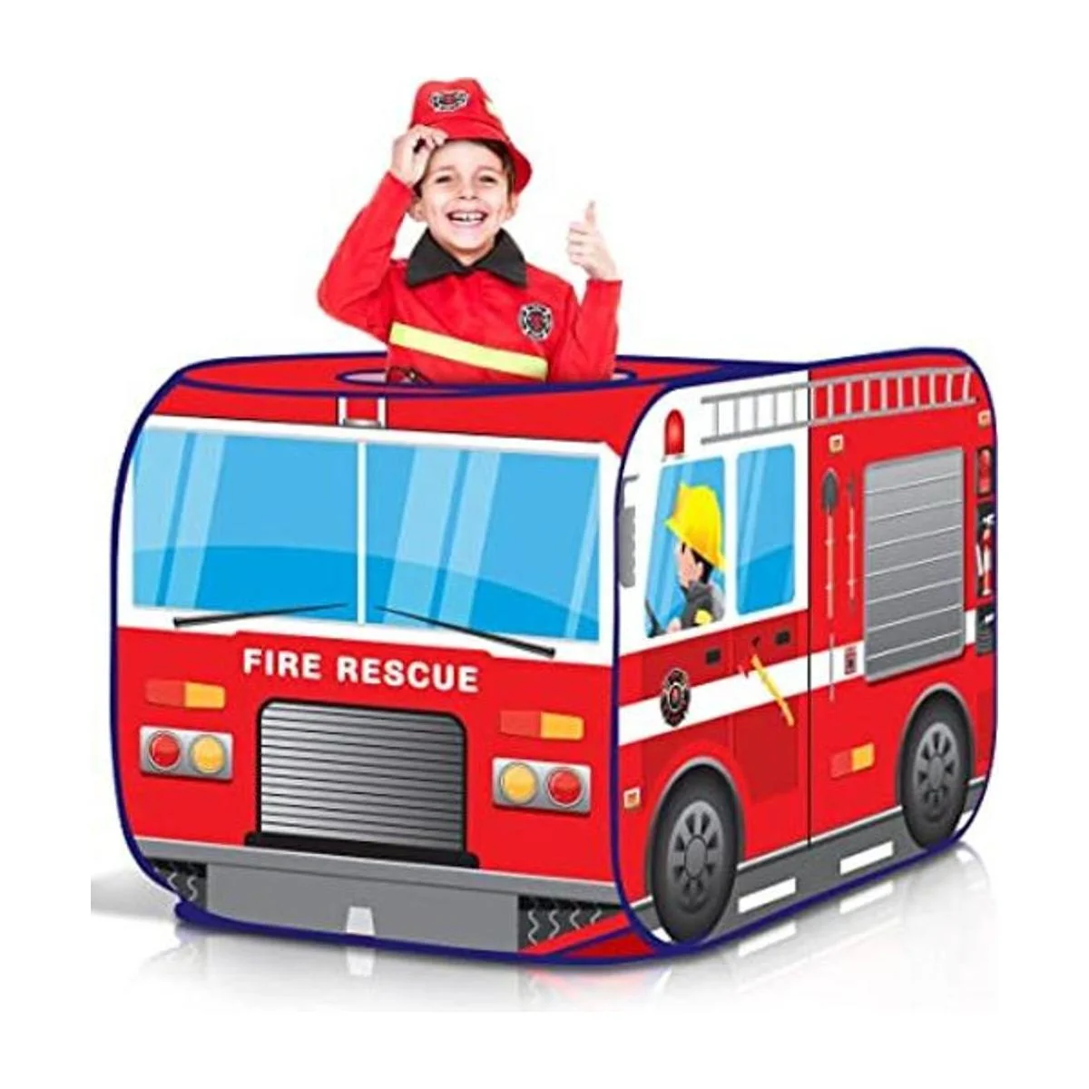 DESIGNED TO STUN: Weve combined a bold touch of red, realistic graphics, and engaging details to create an indoor tent for kids that will capture the imagination. Throwing a themed party Use this popup tent as part of your firetruck birthday decorations for boys and girls.
