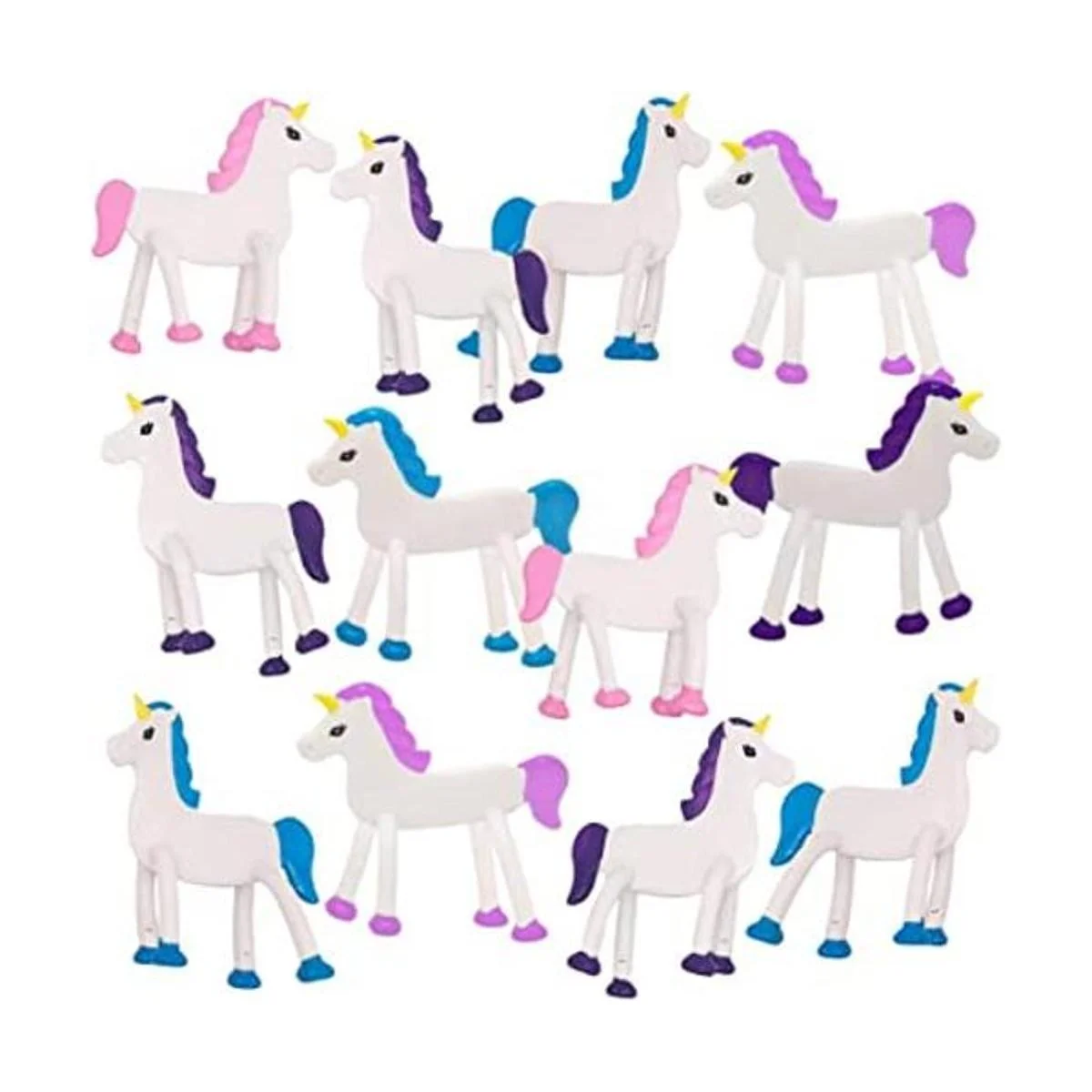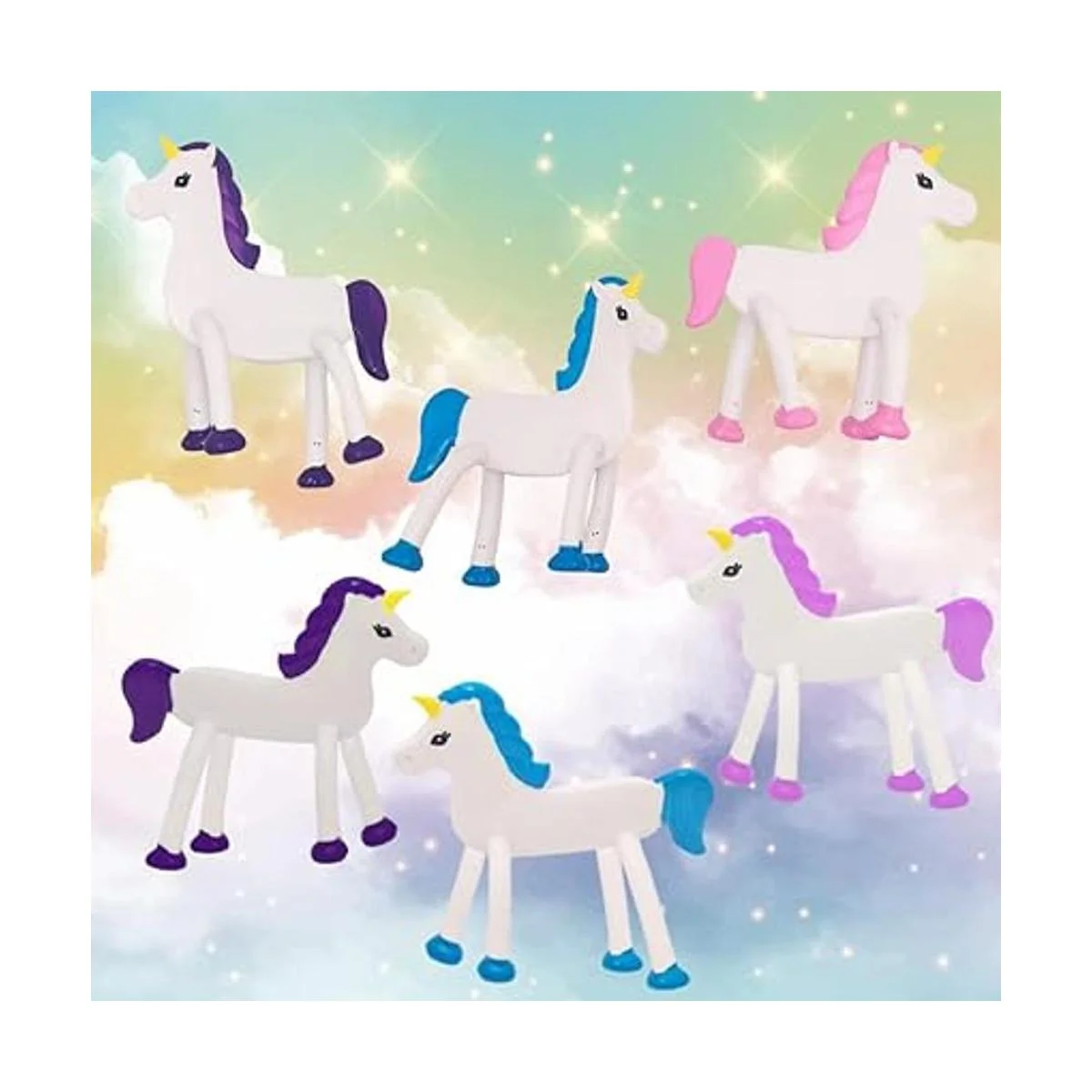 Surtido vibrante: añade un poco de brillo a ese bash. Cada juego viene con unicornios flexibles en un llamativo surtido de colores. El hermoso unicornio con su crin y cola de colores te hará un cumplido tras otro.