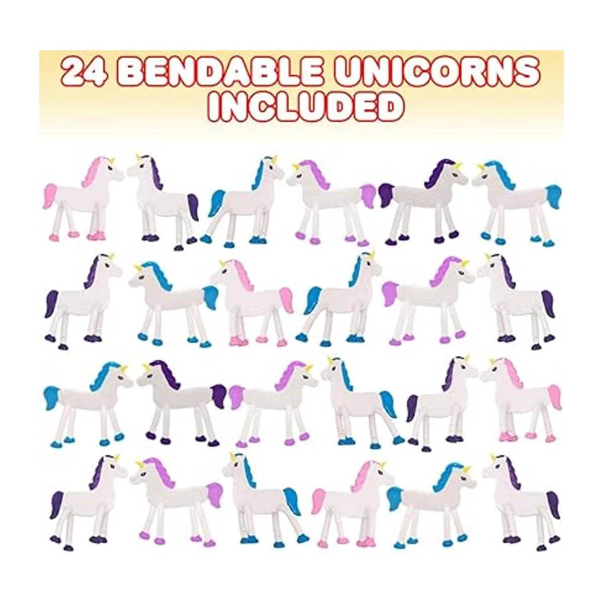 ArtCreativity Unicornios doblables, juego de 24, figuras de unicornio flexibles, juguetes para aliviar el estrés, rellenos de piñata, regalos de fiesta de cumpleaños, bolsas para niños