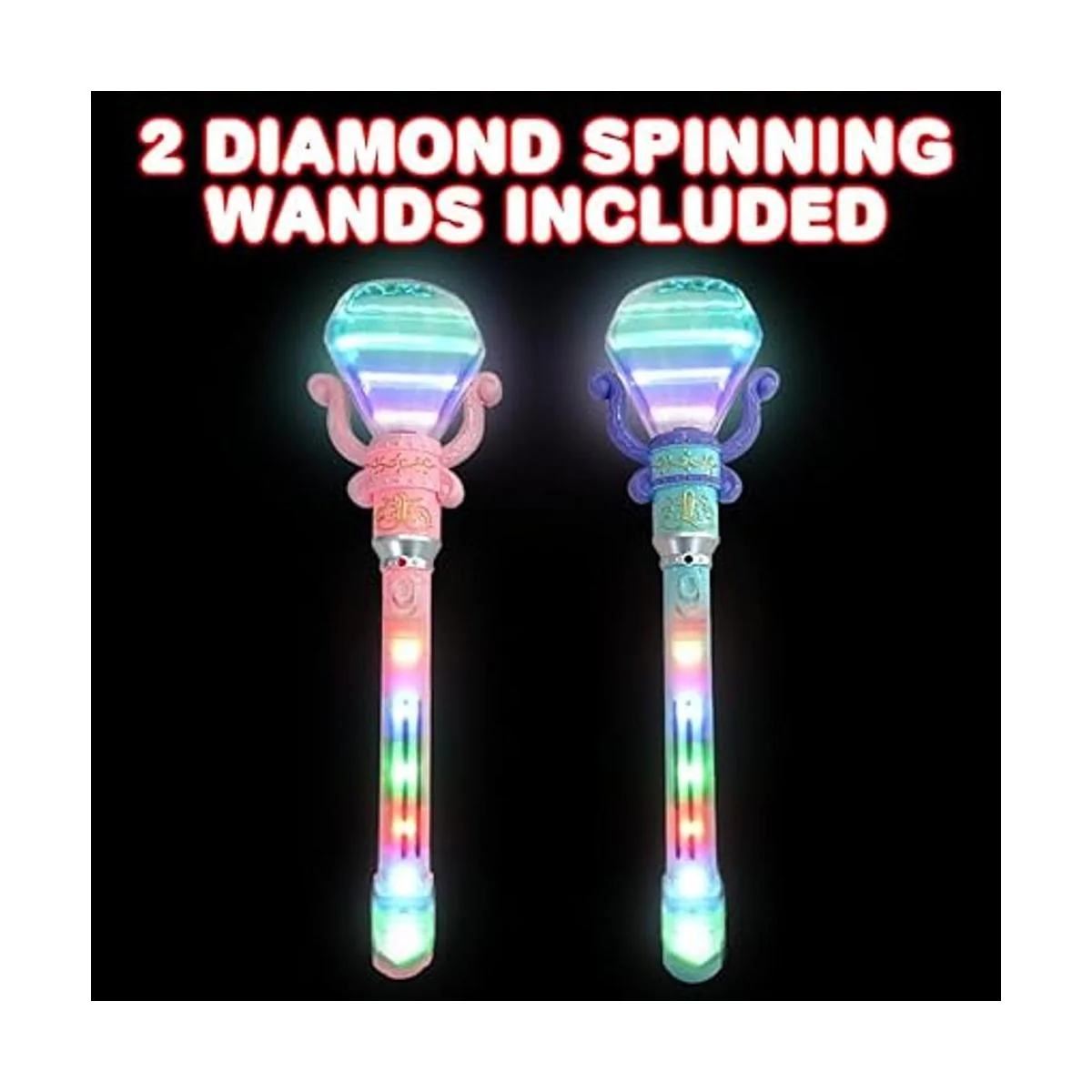 ArtCreativity Varitas de diamante iluminadas para niños, juego de 2, varitas LED de princesa para niñas y niños con LED giratorios y baterías incluidas, juguetes de princesa para horas de juego de simulación, rosa y azul