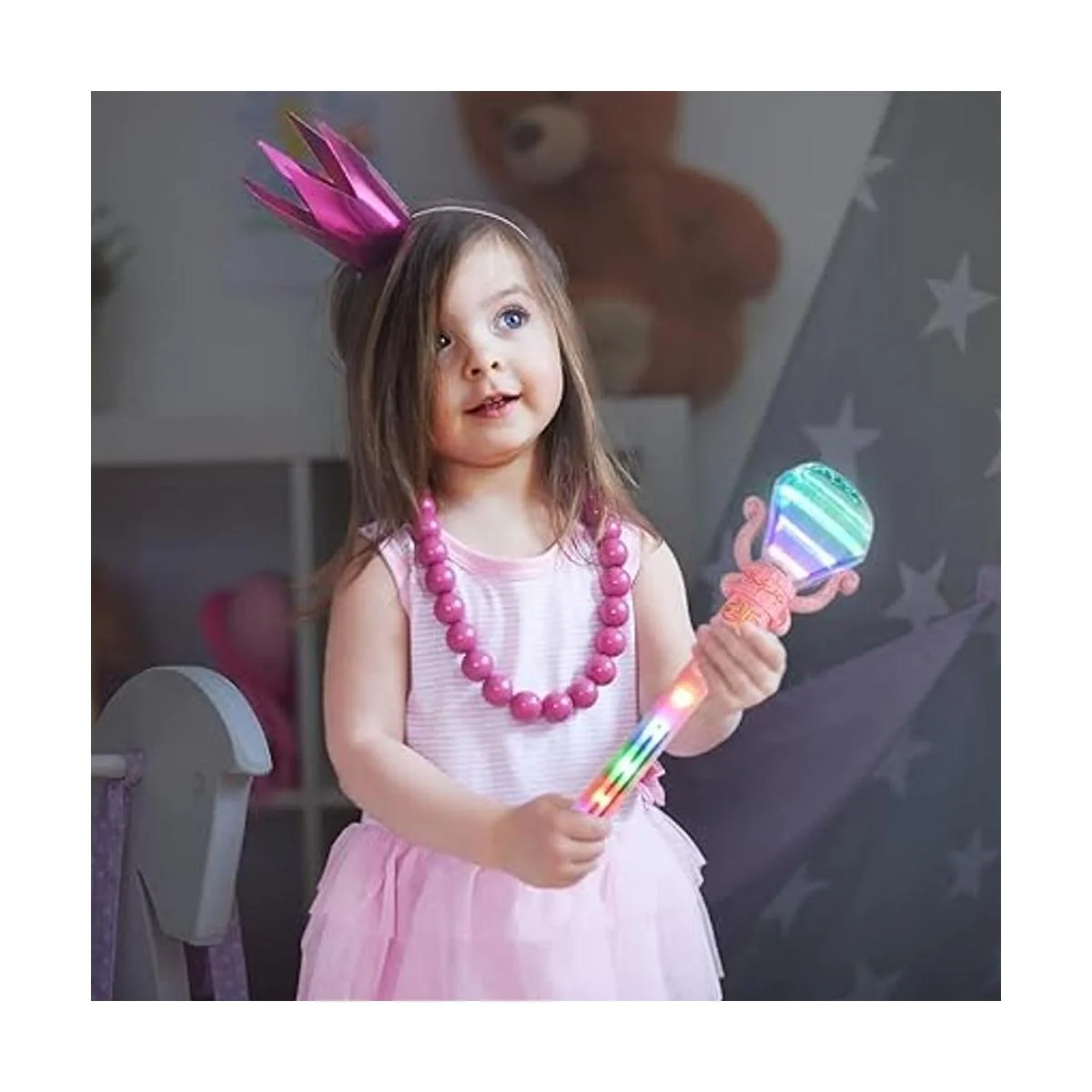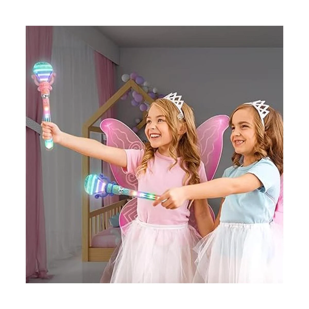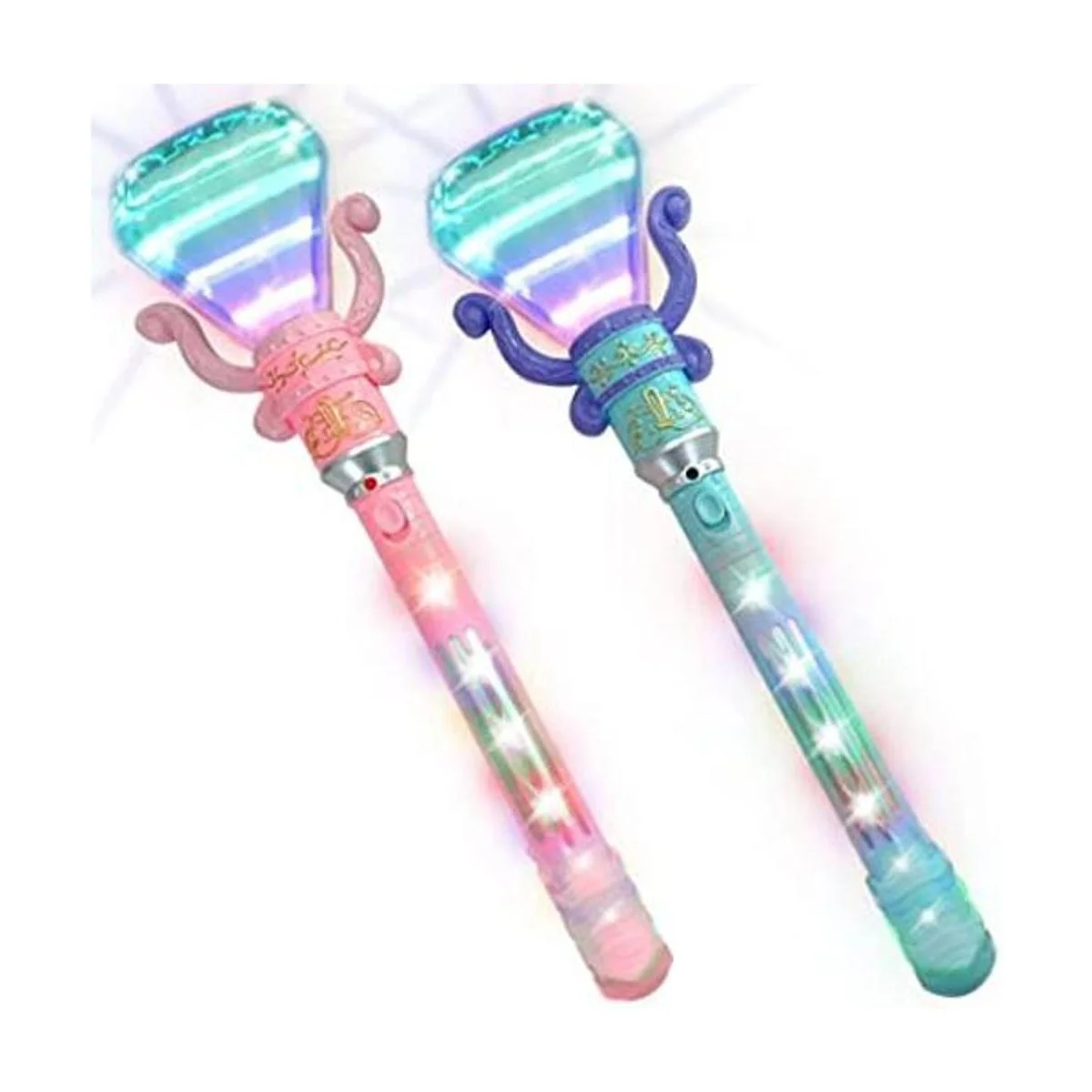 Duplica el bien: una receta para risitas alegres y horas de imaginación. Este paquete viene con un juego de 2 varitas LED de 14 pulgadas para niños. A los más pequeños les encantará la parte superior en forma de diamante y los adorables detalles a lo largo de la Recibirás 1 varita rosa y 1 varita azul.