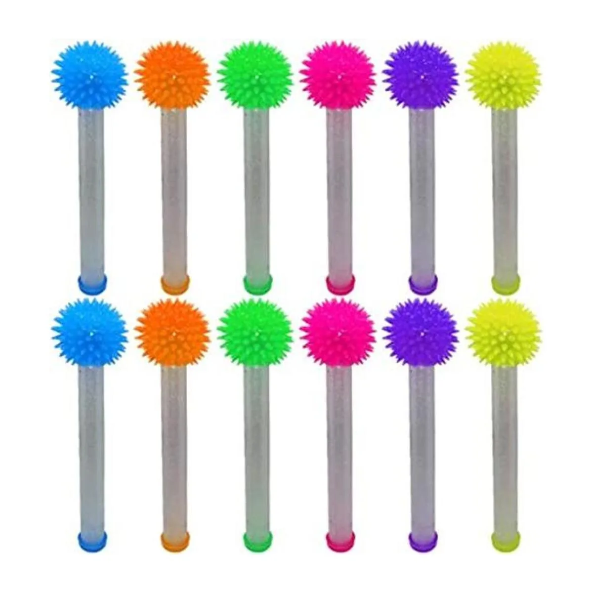 Colores brillantes: los juguetes para ansiedad miden 9.25 pulgadas y vienen en una fascinante variedad de colores, incluyendo azul, naranja, verde, rosa, morado y amarillo. Para iluminarlos, rebotarlos o girarlos para un espectáculo de luces fuera de este mundo. Vienen con baterías que no son reemplazables.