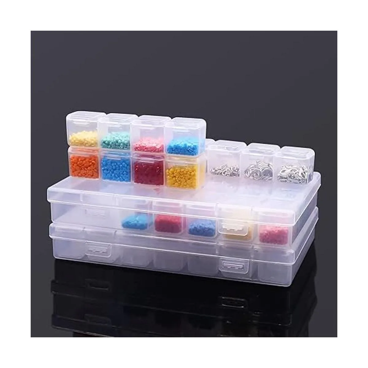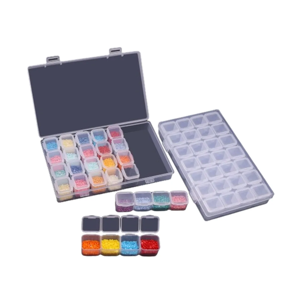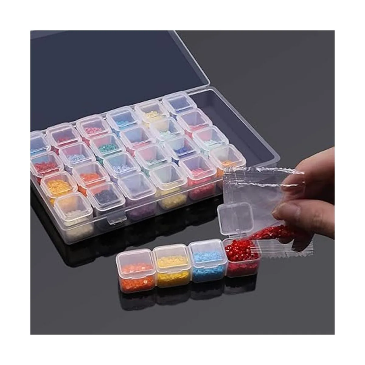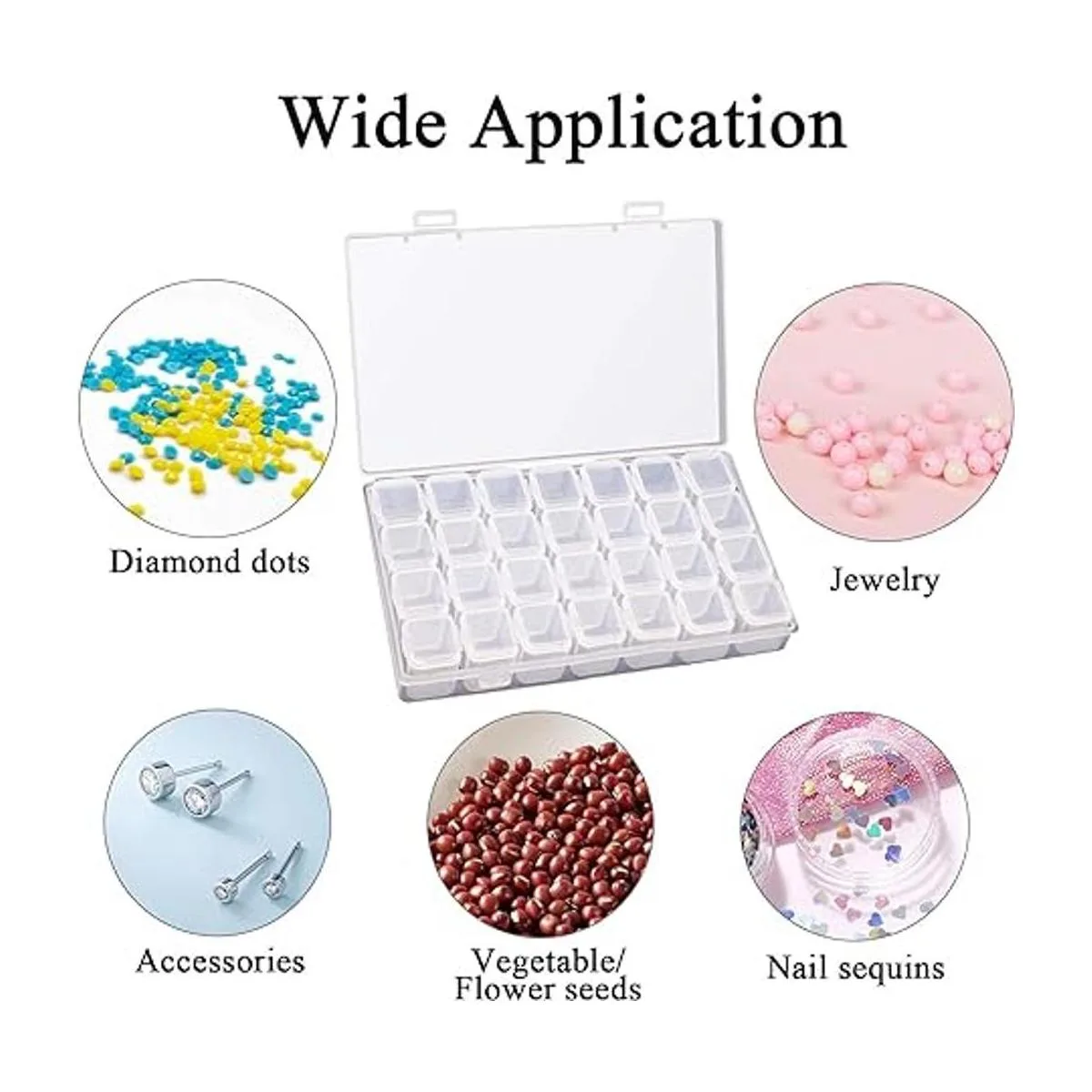 Cajas de almacenamiento multifuncionales: se pueden utilizar para almacenar varios objetos pequeños como puntos de diamante, cuentas de joyería, puntos de pintura de diamantes, joyas de uñas, semillas de verduras y tornillos pequeños, etc.