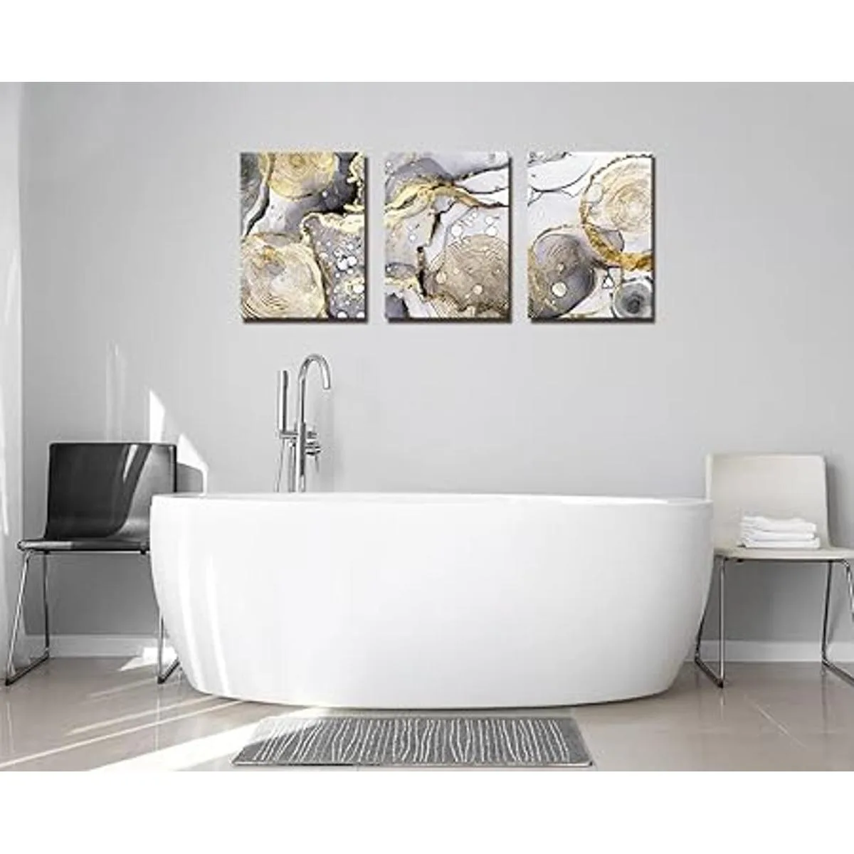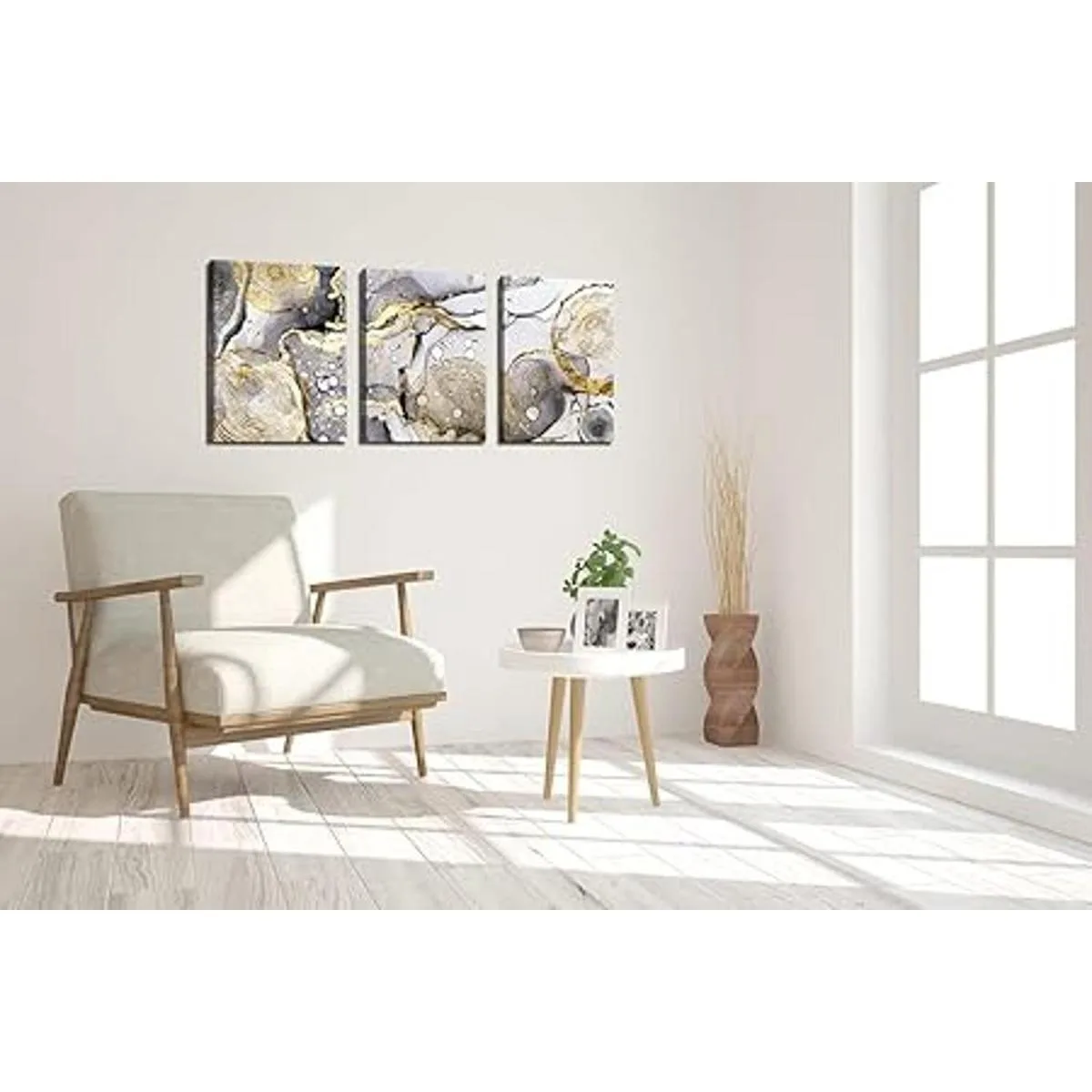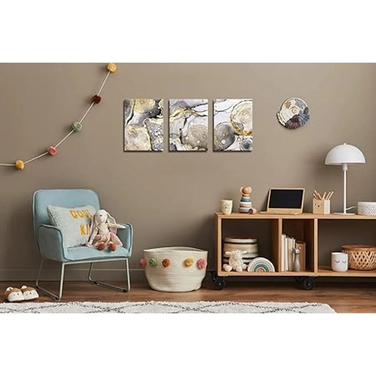 Arte de pared abstracto dorado, 3 piezas, arte moderno enmarcado, blanco y negro, gris, tinta fluida, anillos anuales, impresiones en lienzo, pintura para sala de estar, dormitorio, cocina y oficina, decoración de pared del hogar