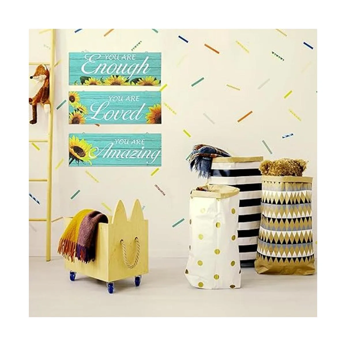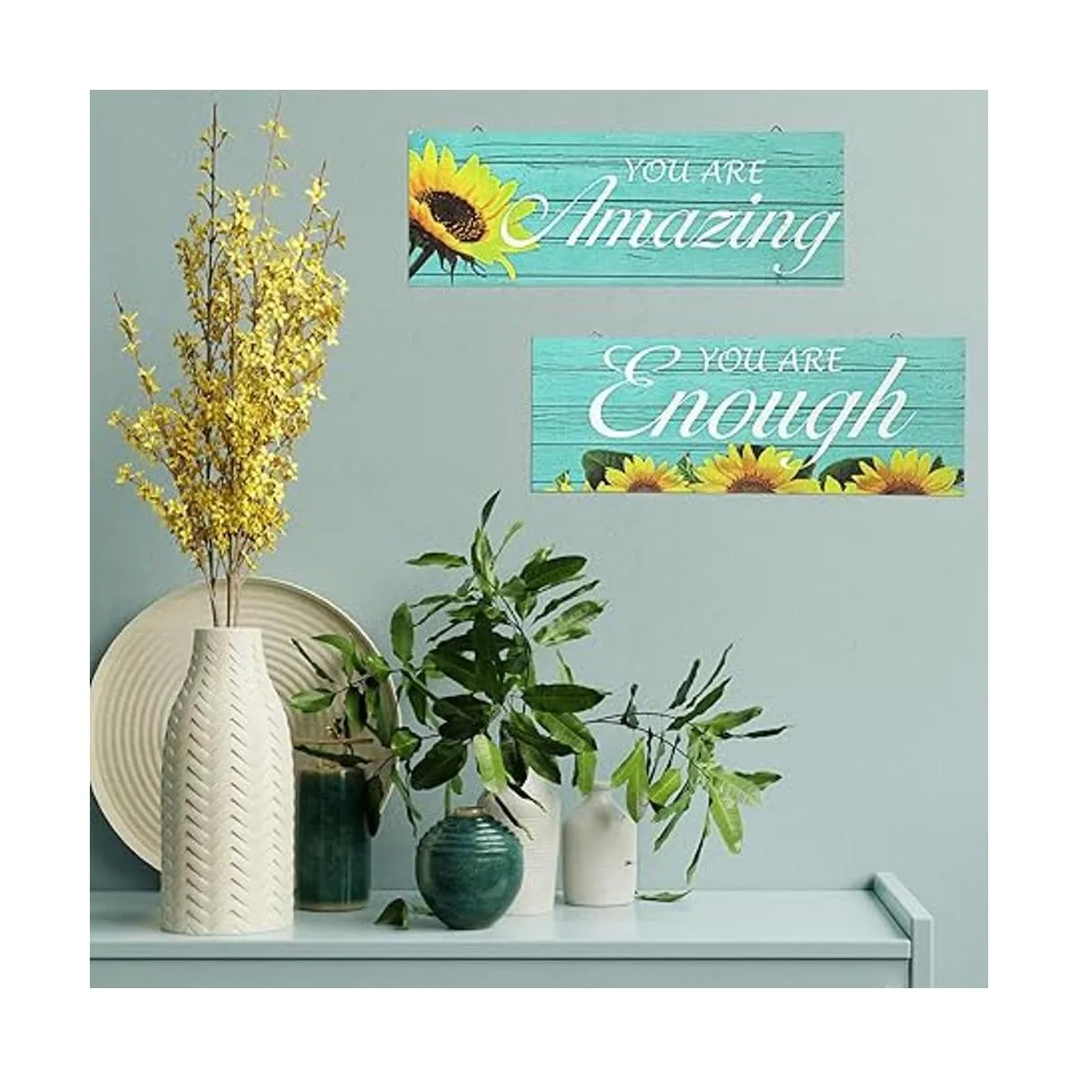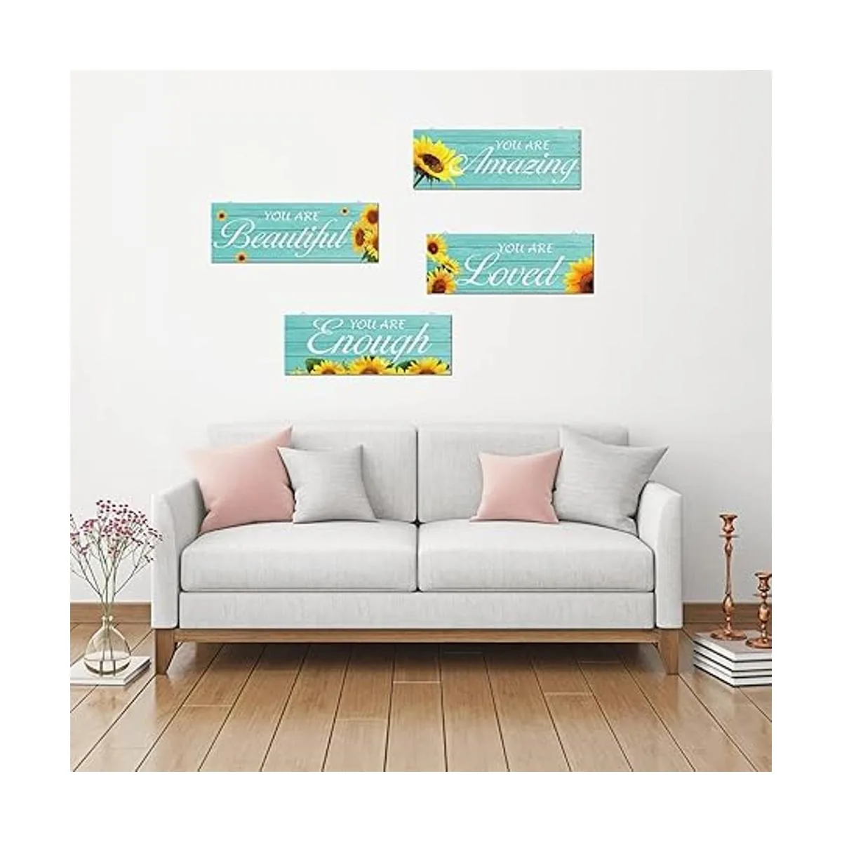 Arte de pared colgante de girasol, 4 piezas de madera vintage con texto en inglés You are Enough You are Loved, decoración de pared rústica de madera colorida para decoración del hogar, dormitorio, baño