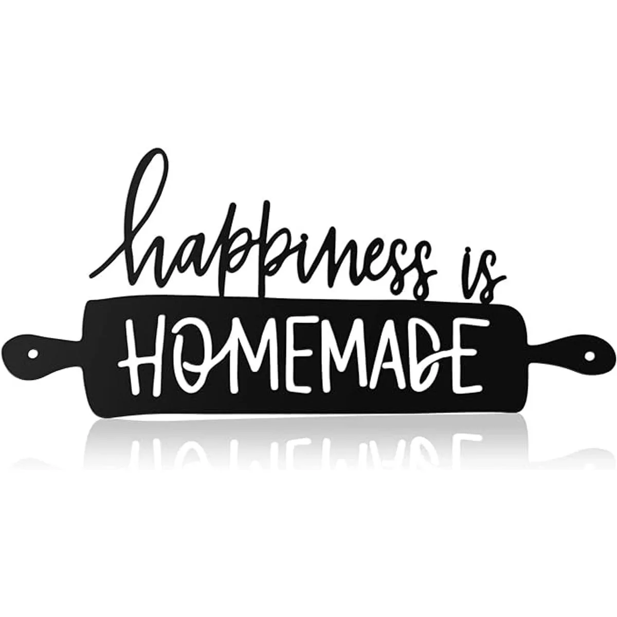 Arte de pared de cocina, decoración de pared de Happiness Is Homemade, letrero de metal rústico, decoración de cocina, decoración de cocina, letreros decorativos de pared y placas para el hogar, comedor, jardín al aire libre, 13.8 x 6.3 pulgadas