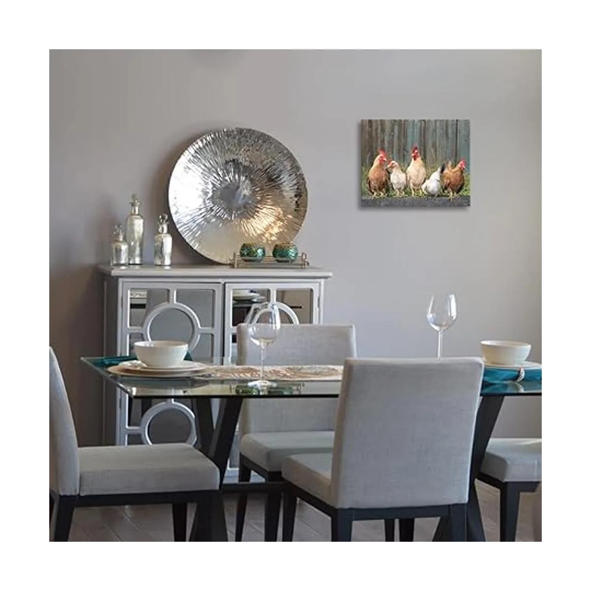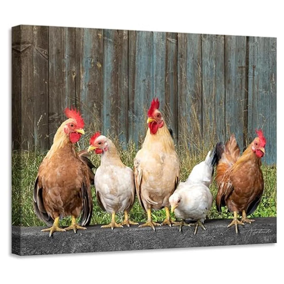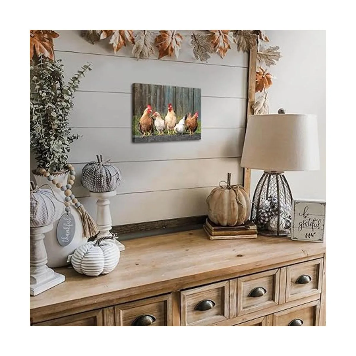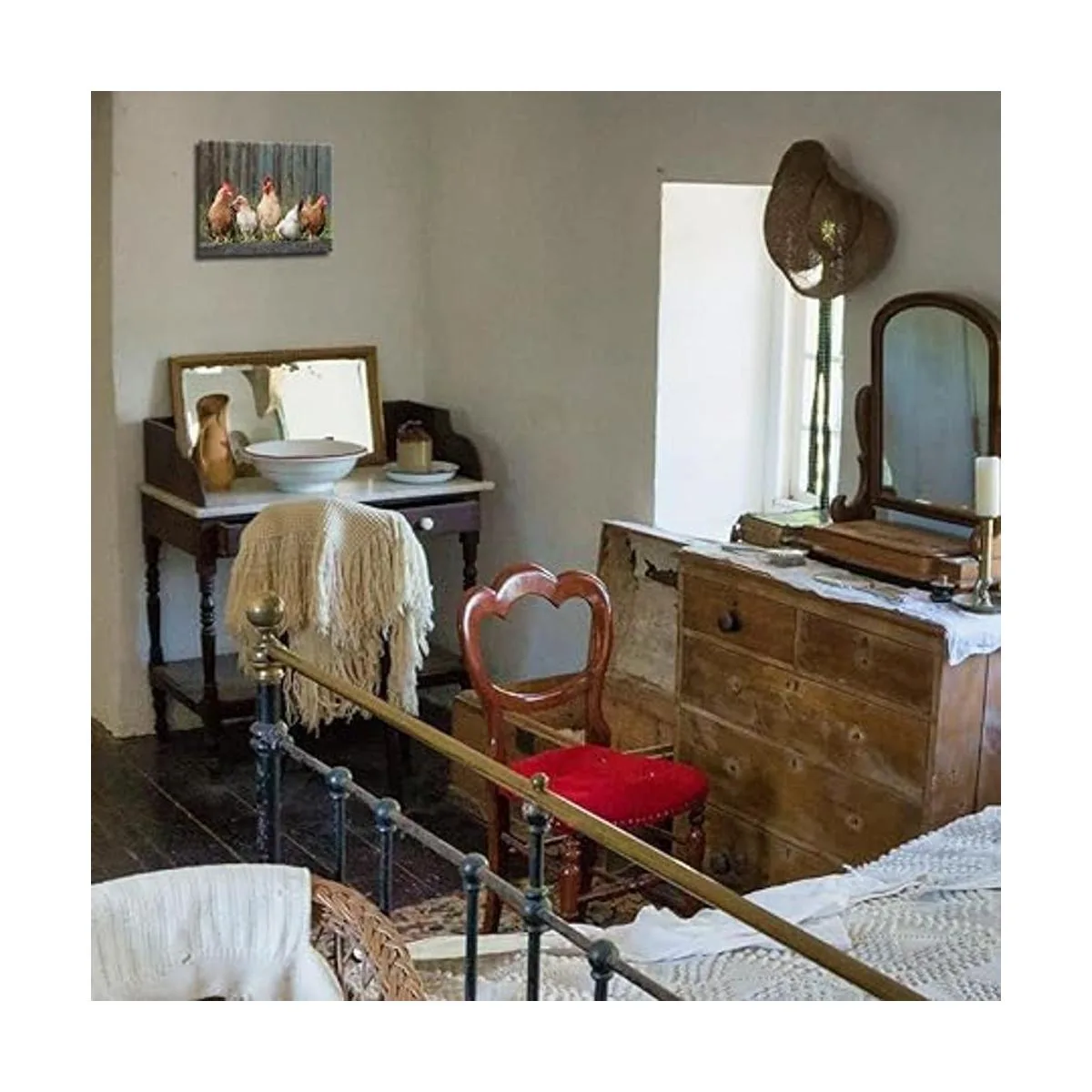 Arte de pared de gallo con fotos de pollo Lienzo enmarcado de 12 x 15 pulgadas