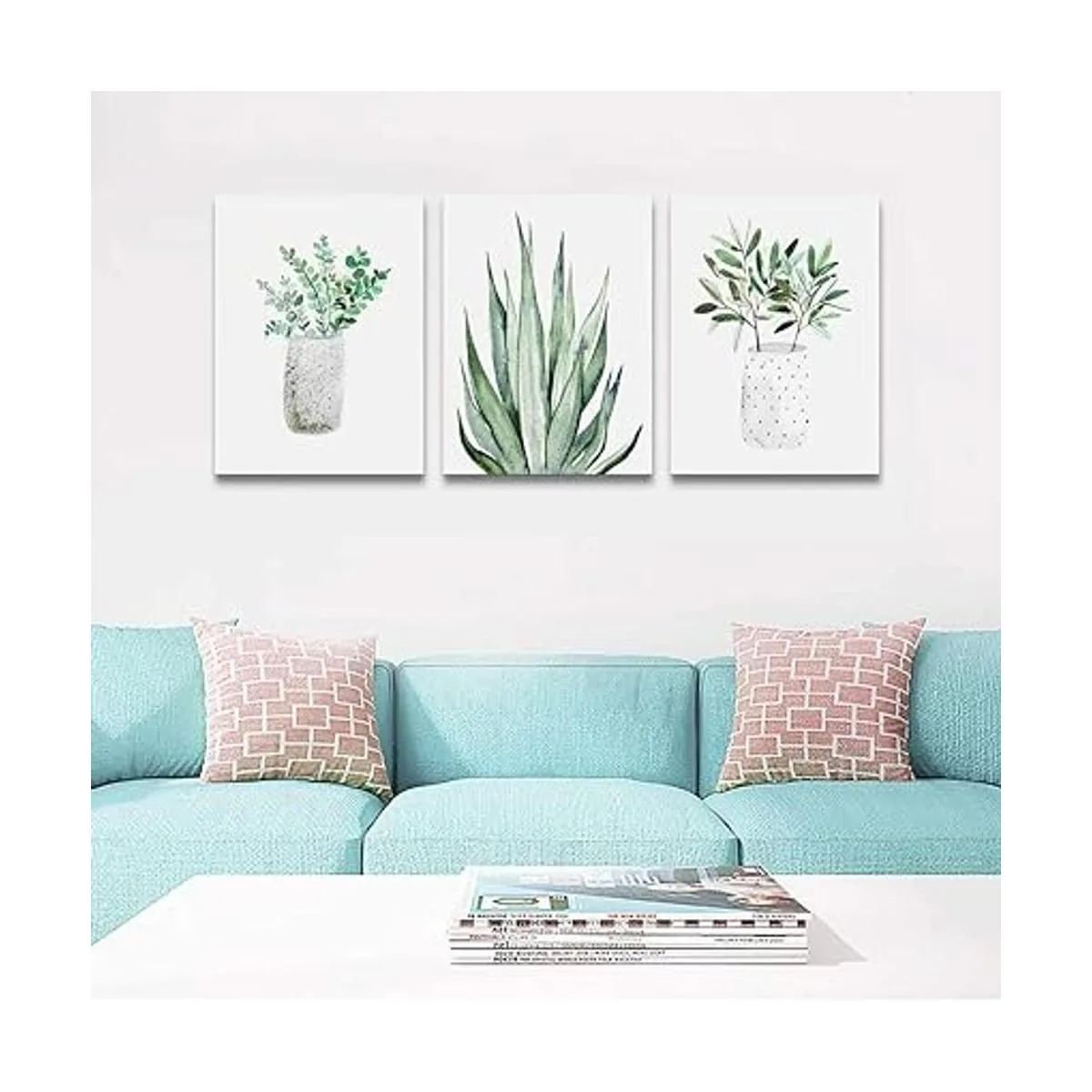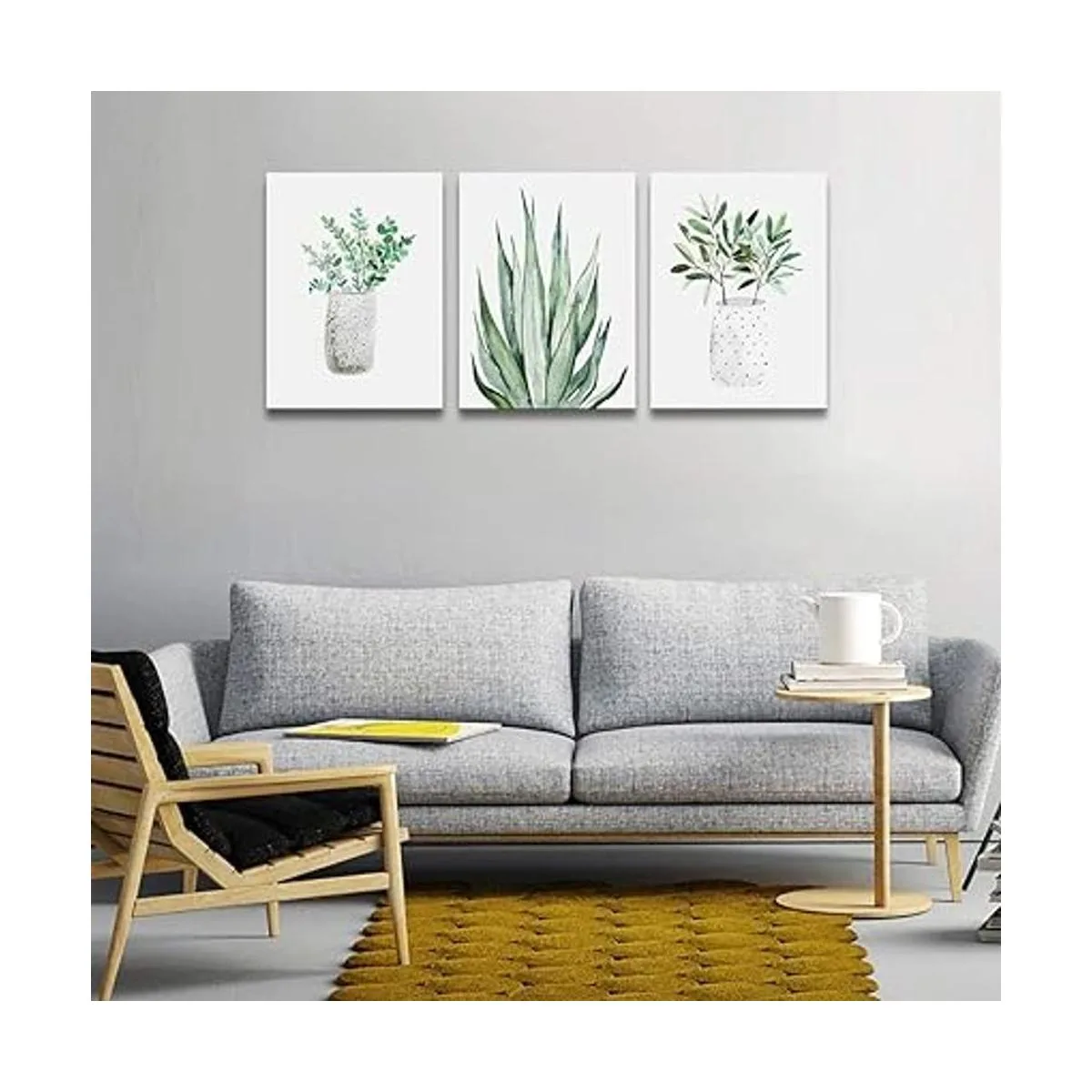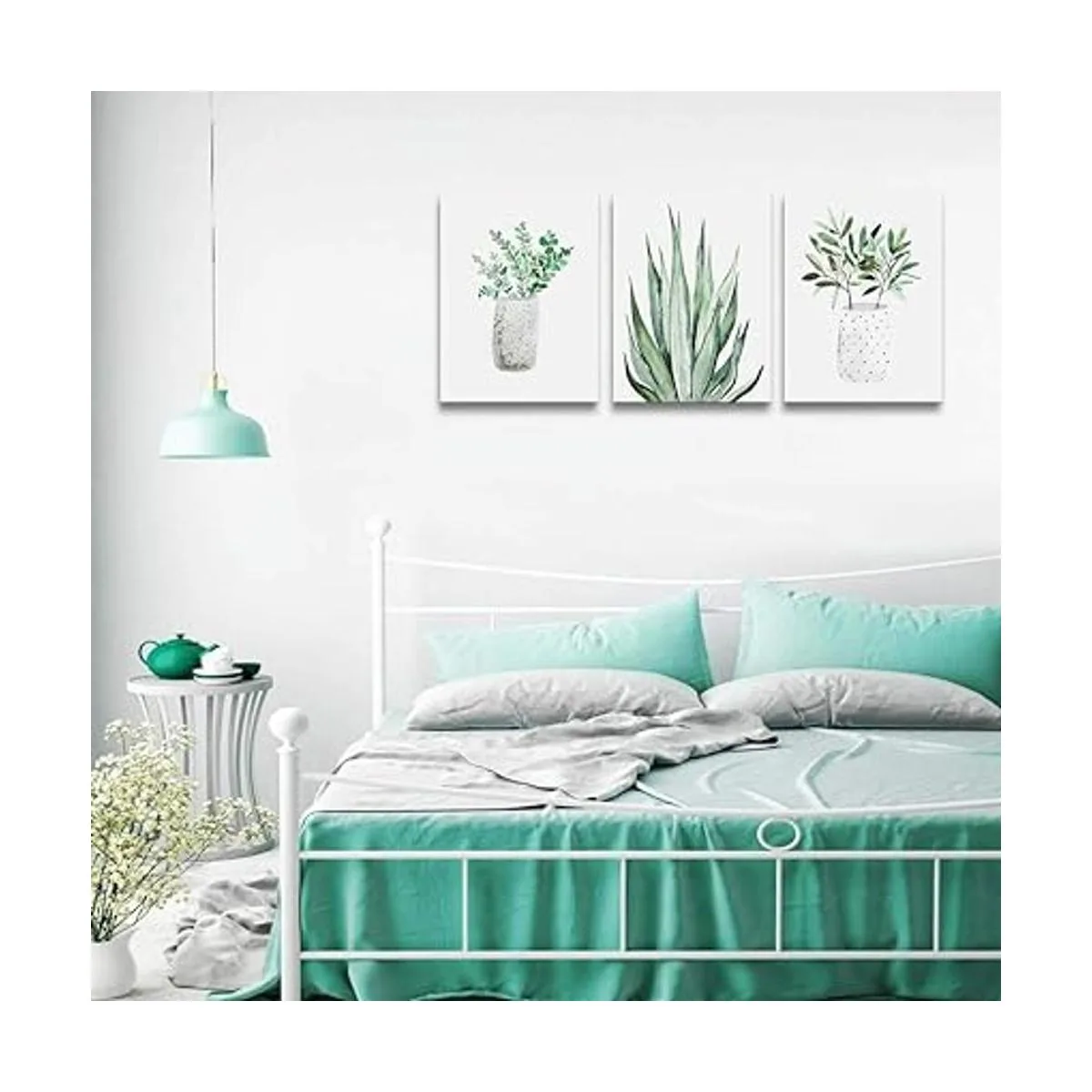 Arte de pared de granja para comedor, baño, arte abstracto en lienzo familiar, decoración de pared para dormitorio, cocina, decoración de pared, sala de estar, arte de hojas verdes, ilustraciones para paredes del hogar, 3 piezas