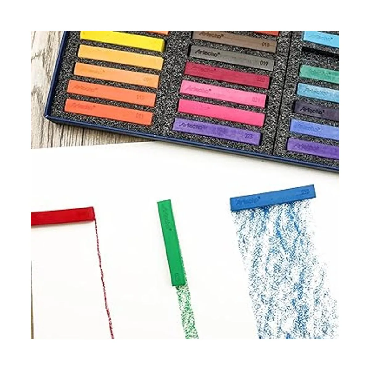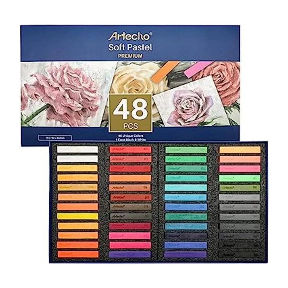 Artecho 48 pasteles suaves de alta calidad, 46 colores incluyendo 4 colores fluorescentes, extra gratis en blanco y negro, tiza cuadrada para dibujar, mezclar, capas, sombrear, suministros de arte para niños, principiantes