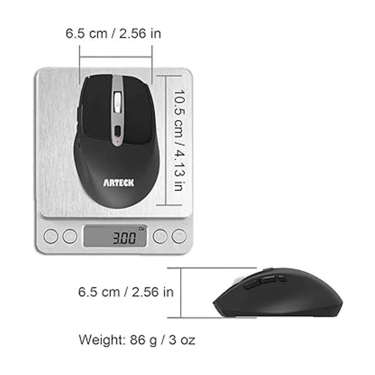 Lo que obtienes: mouse inalámbrico Arteck MW167, un receptor nano USB almacenado en la parte posterior del mouse, cable de carga USBC, guía de bienvenida, nuestra garantía de 24 meses y servicio al cliente amigable.