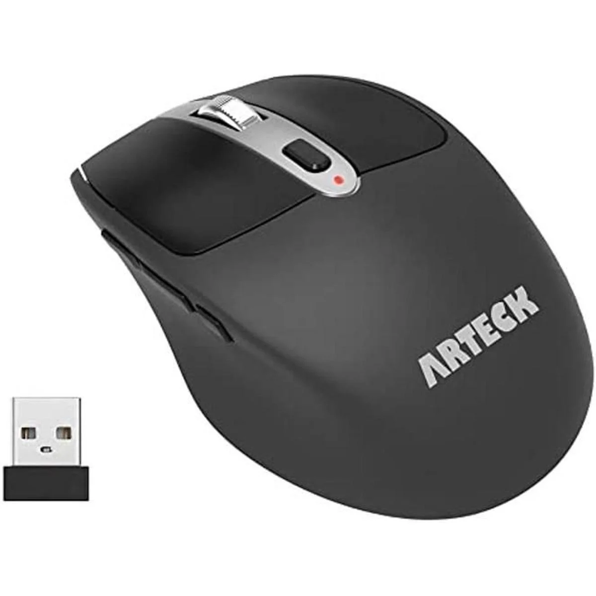 Arteck Mouse inalámbrico de 2.4 G con receptor nano USB, diseño ergonómico, clic silencioso con botones de interruptor lateral para computadora, escritorio, PC, laptop y Windows 1087, batería recargable integrada, color negro
