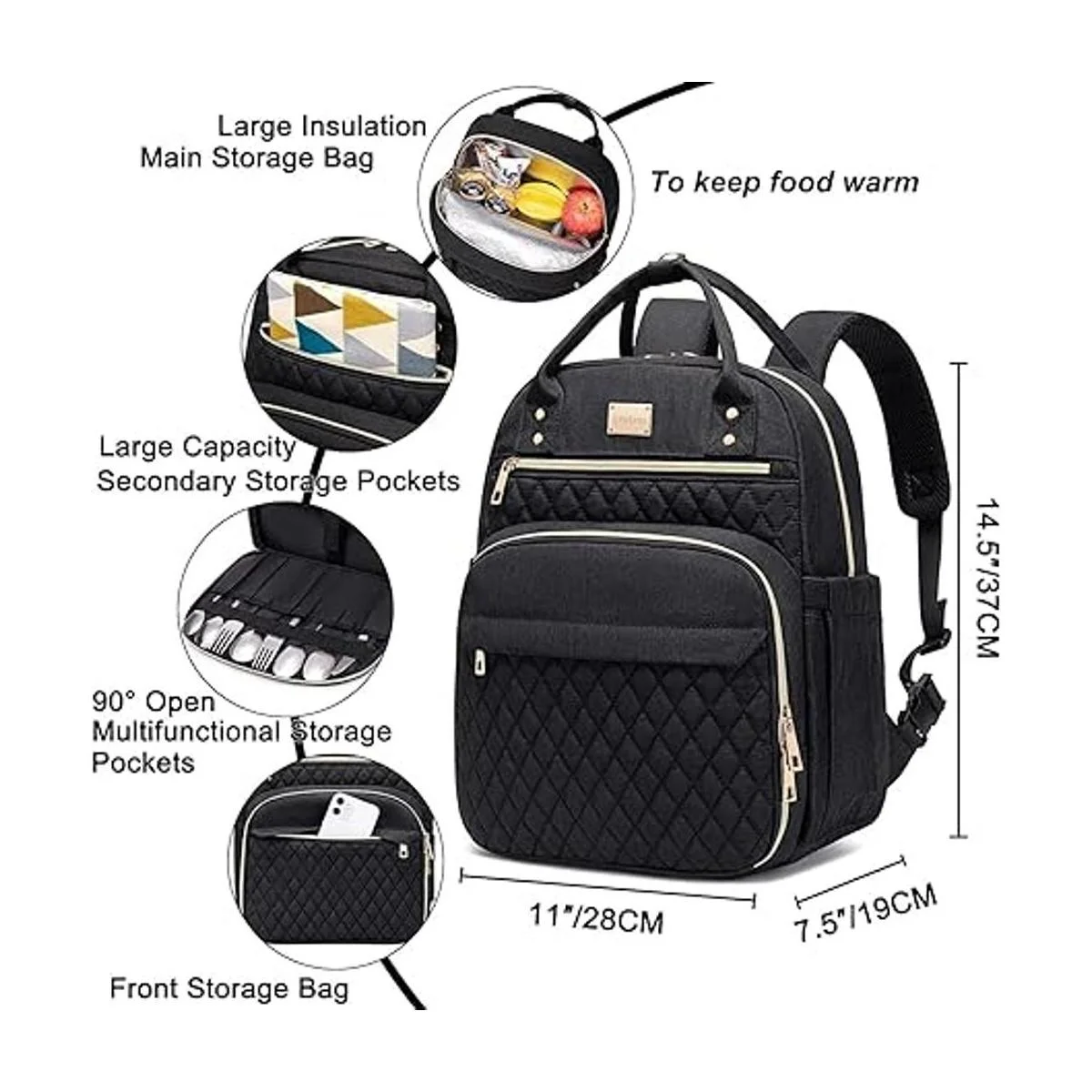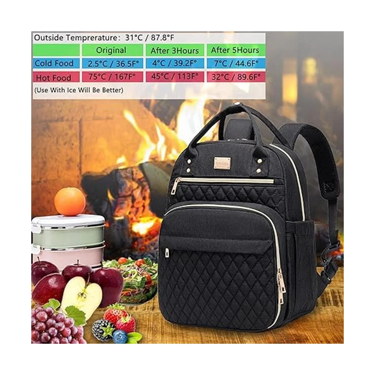 Artelaris Mochila de almuerzo para mujer, mochila aislada con soporte para botella de agua, lonchera para adultos, mochila multiusos con bolsillo lateral y correa oculta para picnic, trabajo, viajes, escuela