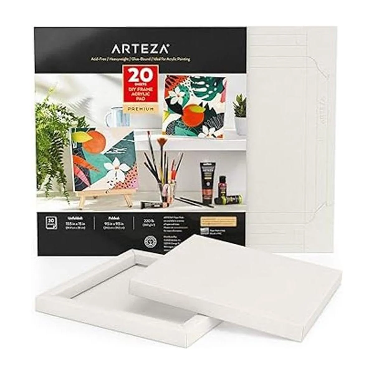 ARTEZA Bloc de lienzo plegable de papel acrílico, 9.5 x 9.5 pulgadas, 20 hojas, marco de bricolaje, papel de pintura acrílica pesado, 220 libras, 360 GSM, sin ácidos, suministros de arte para pintura y arte de medios mixtos