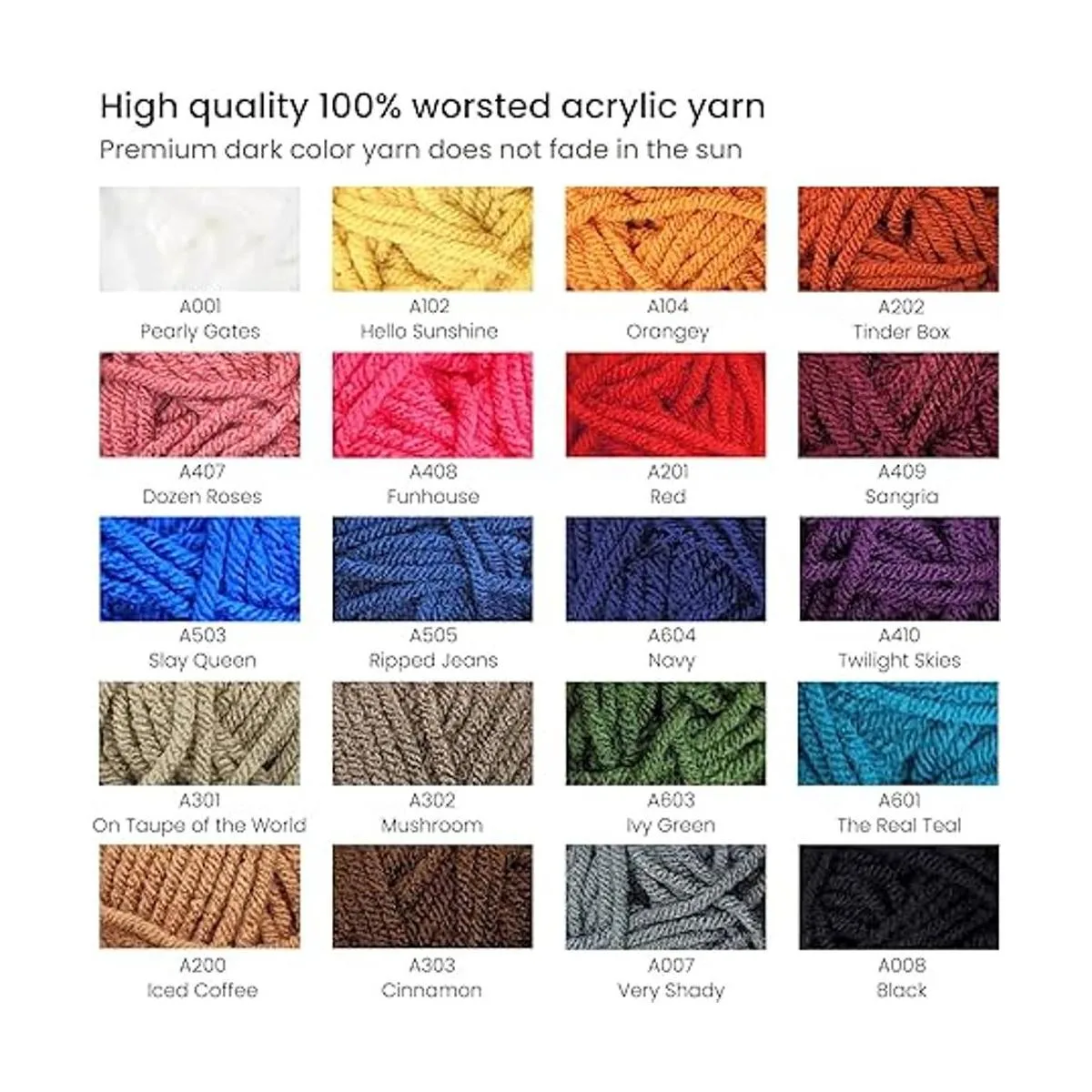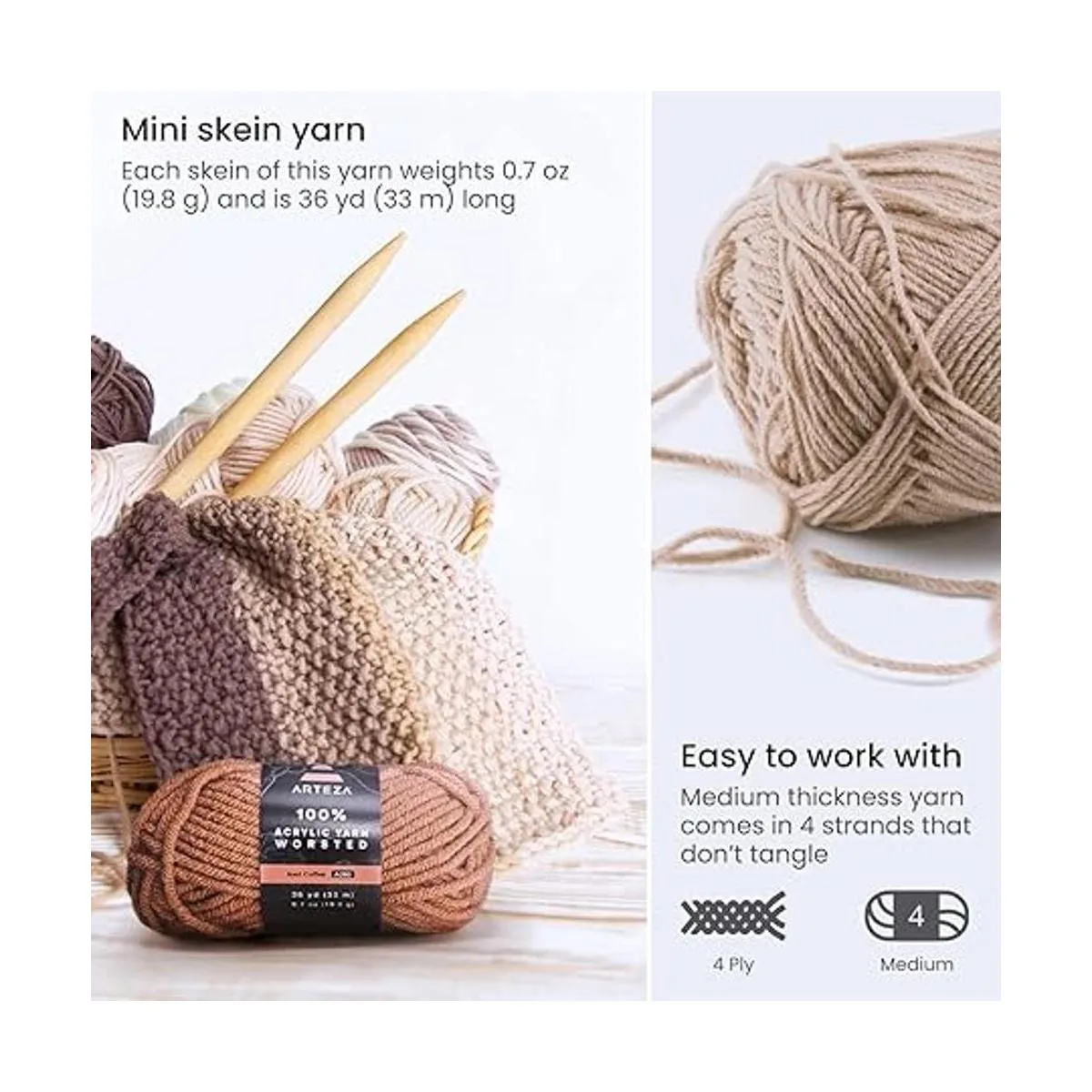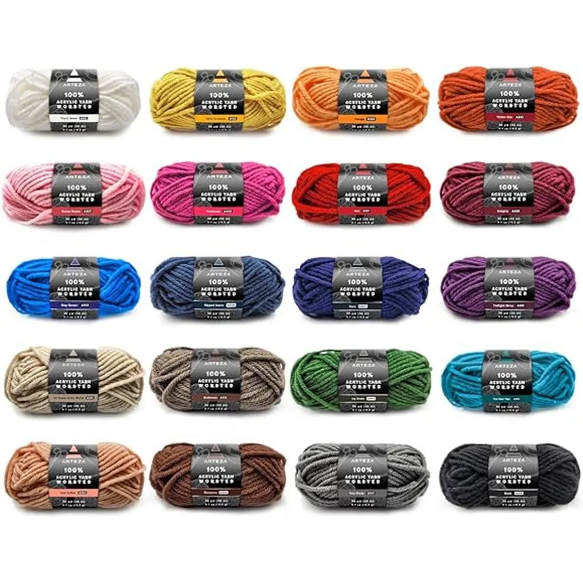 Arteza Hilo acrílico para ganchillo, 20 mini madejas de hilo de estambre para tejer en colores oscuros, lavable a máquina, suministros de punto y ganchillo, uso con agujas de tejer y ganchos de ganchillo