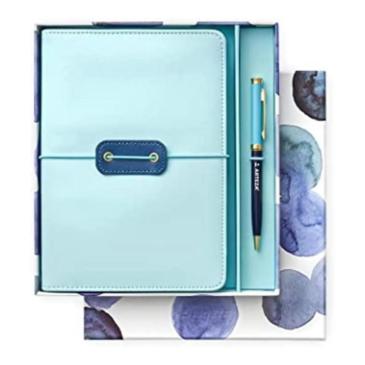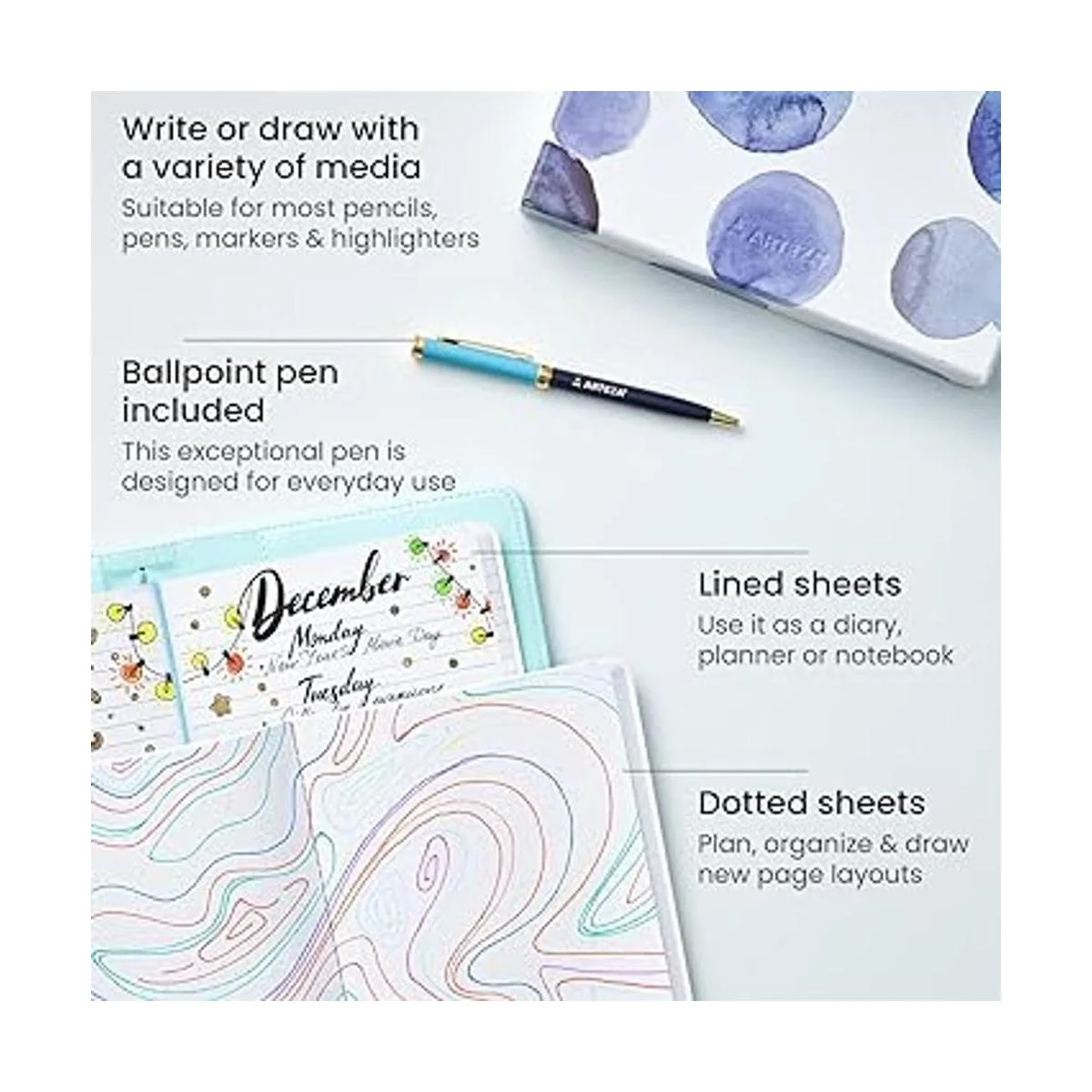 Arteza Juego de regalo de diario, paquete de 2, 6 x 8 pulgadas, cuadernos de 70 hojas con papel rayado y punteado de doble cara, soporte para diario y 1 bolígrafo de tinta negra, suministros de oficina para graduados, estudiantes y profesores