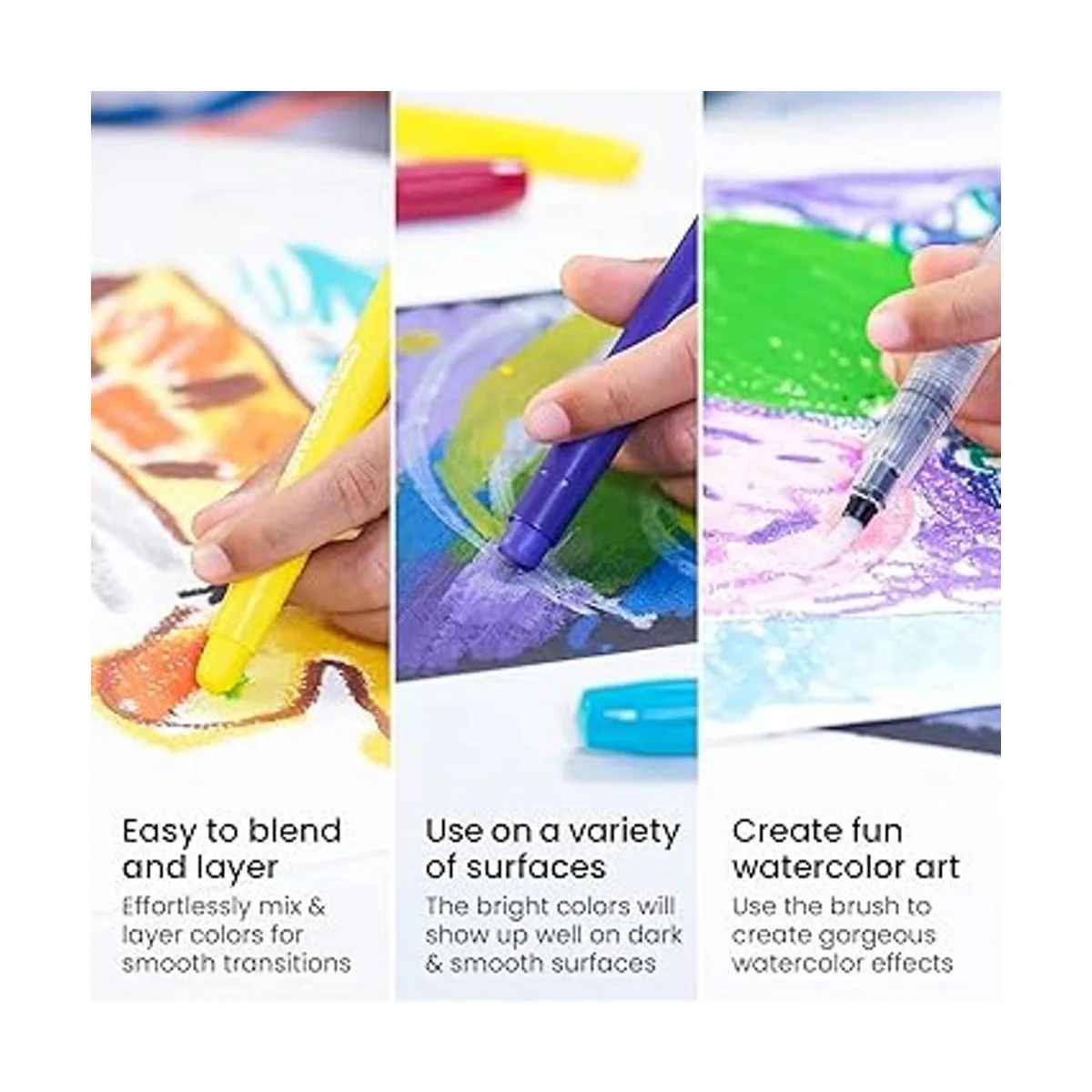 36 lápices de colores brillantes: hemos diseñado nuestros colores vivos para mezclarse fácilmente, ya que se deslizan suavemente sobre tu papel. Estos crayones de acuarela se pueden utilizar como una introducción a acuarelas, técnicas pastel y uso de barras de pintura.
