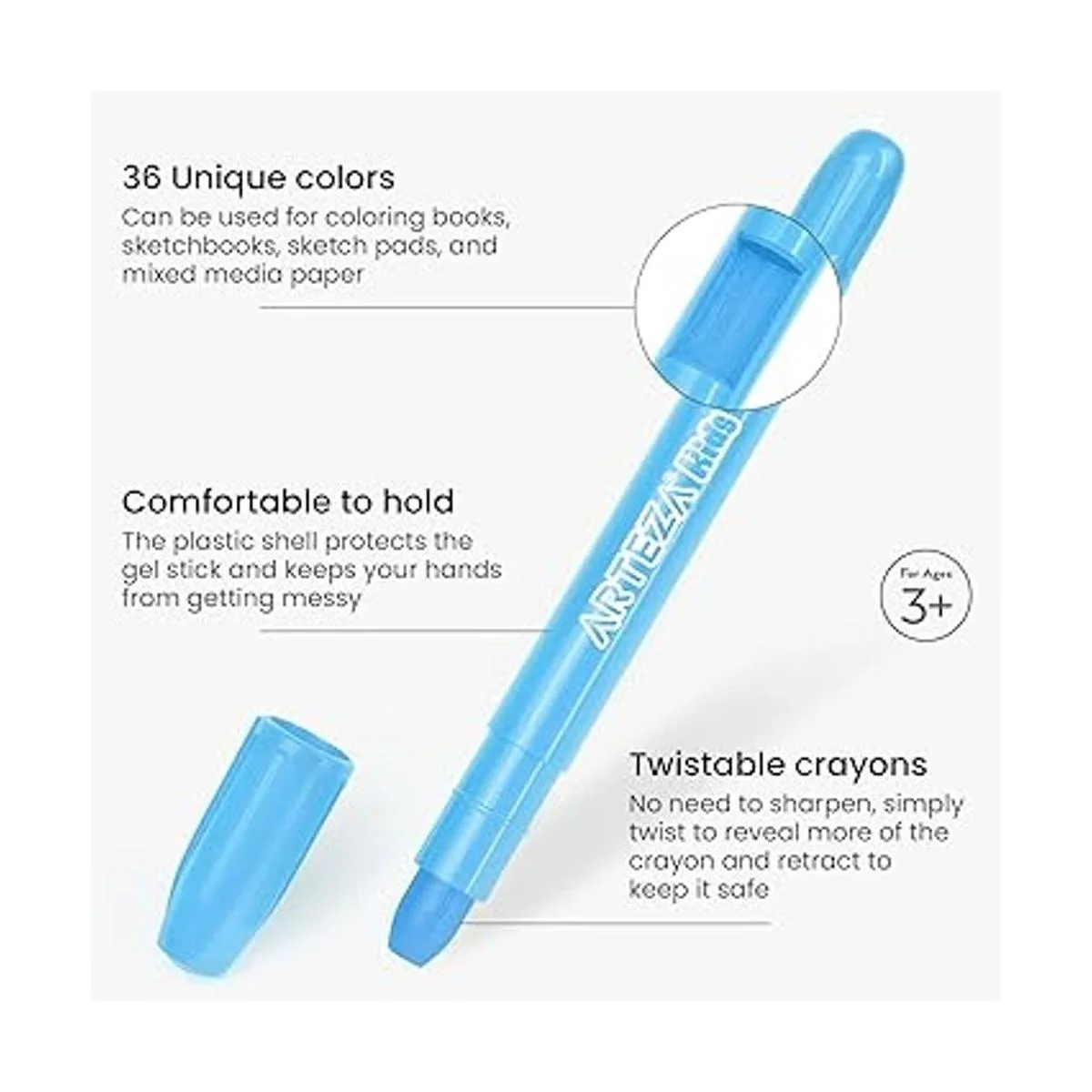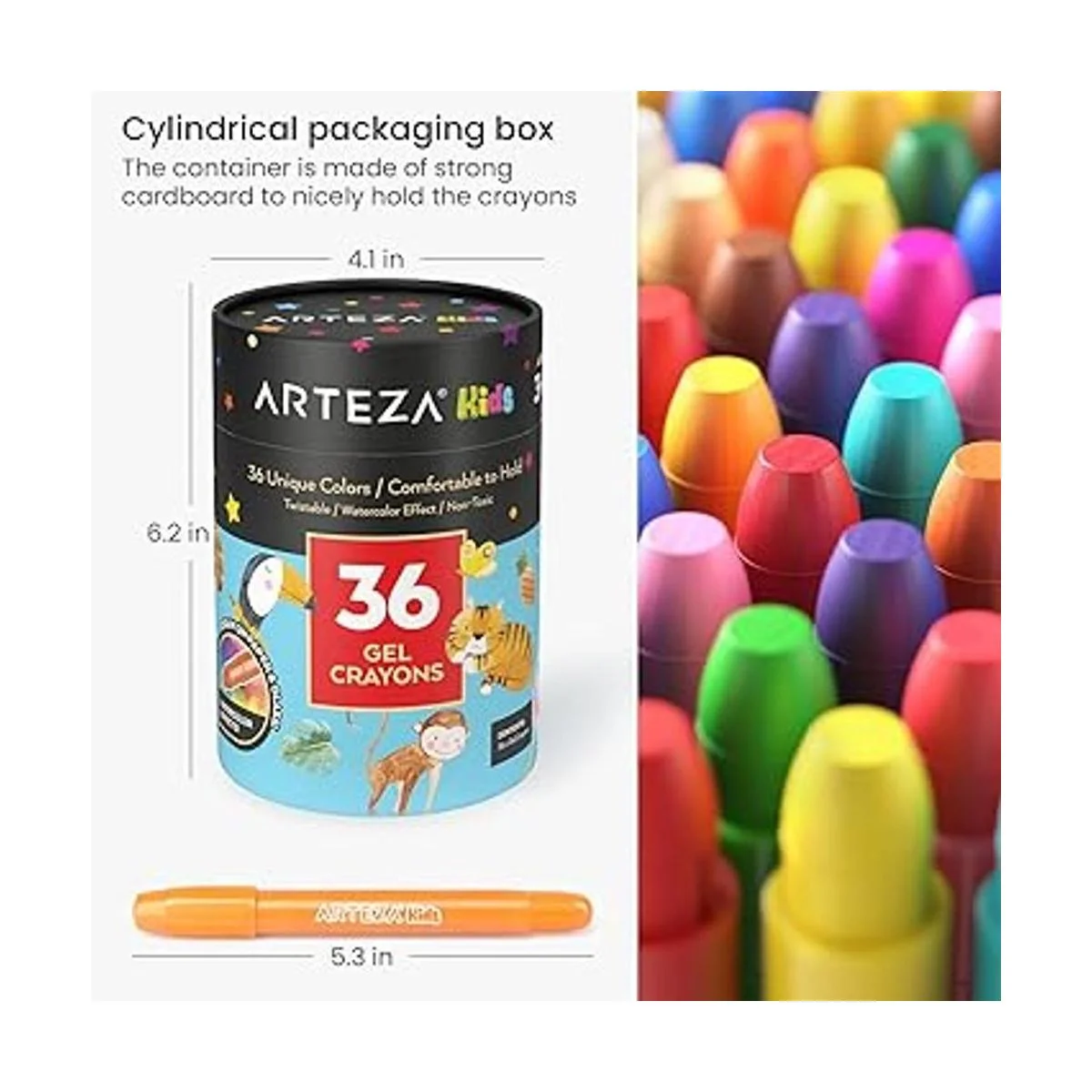 Arteza Kids Crayones de gel, 36 unidades, crayones gigantes giratorios y lavables, suministros escolares para aulas, estudiantes y profesores