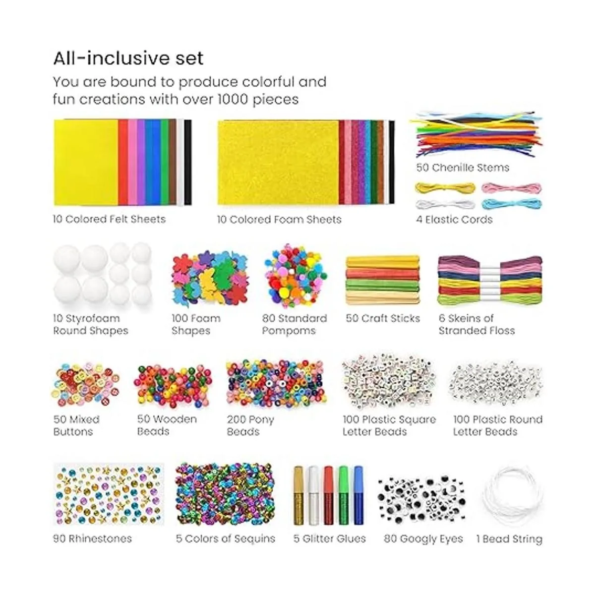 ARTEZA Kit de manualidades definitivo, más de 1,000 piezas y suministros de manualidades, fieltro, pompones, ojos Googly, pegamento con purpurina, limpiadores de tuberías para manualidades y proyectos de bricolaje